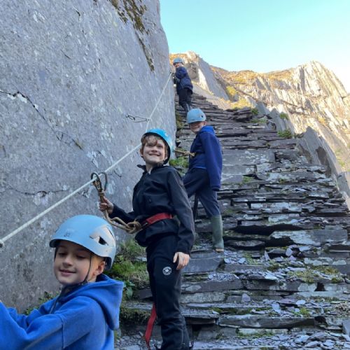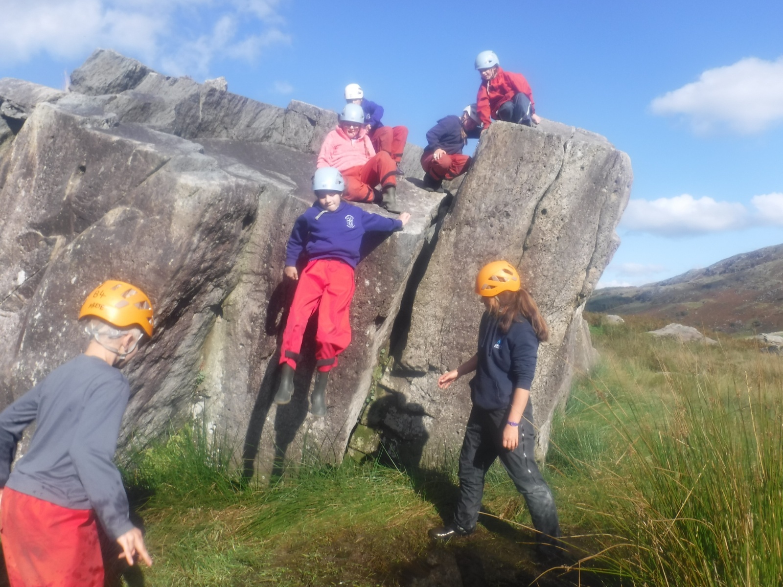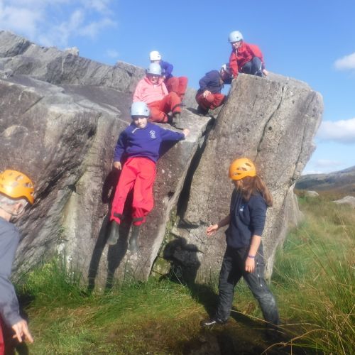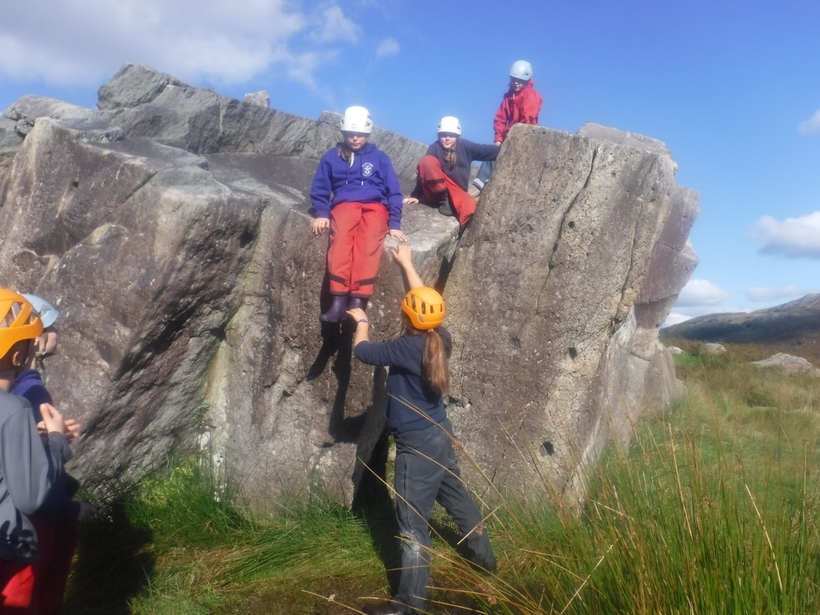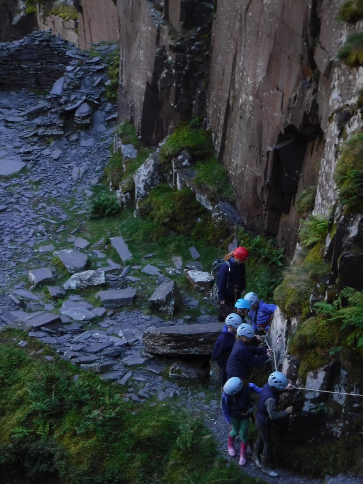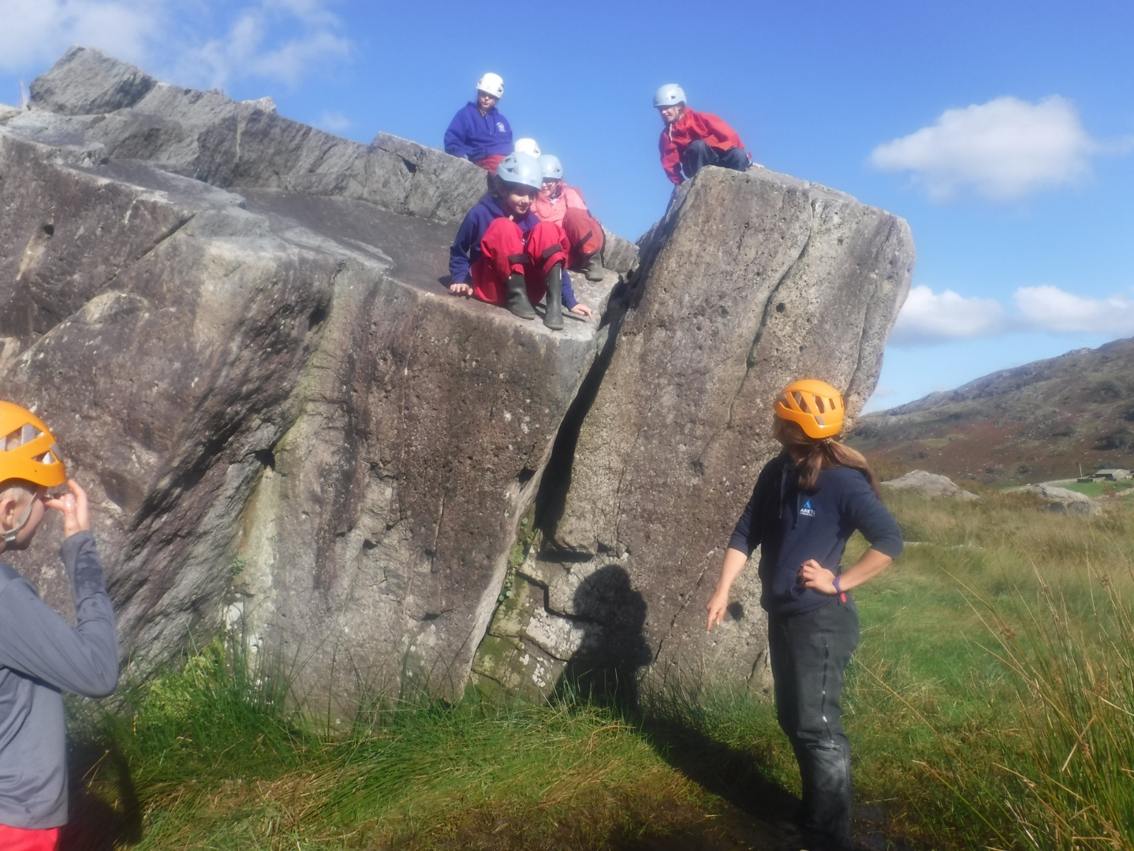 Today we left school and made the long journey to Snowdonia in North Wales. We arrived safely at the Arete Centre in the village of Llanrug and then headed out on our first activities. Holly's group explored holes and passages between boulders at the RAC boulders as they went weaselling. Jez's group donned harnesses and cowtails and practised their cliplining skills as they climbed in a quarry. Dan's group headed to Lion Rock near Llyn Padarn and went rock climbing. After our delicious evening meal, our first night activity was a walk along the coast to Caernarfon Castle. It was stunning first day!