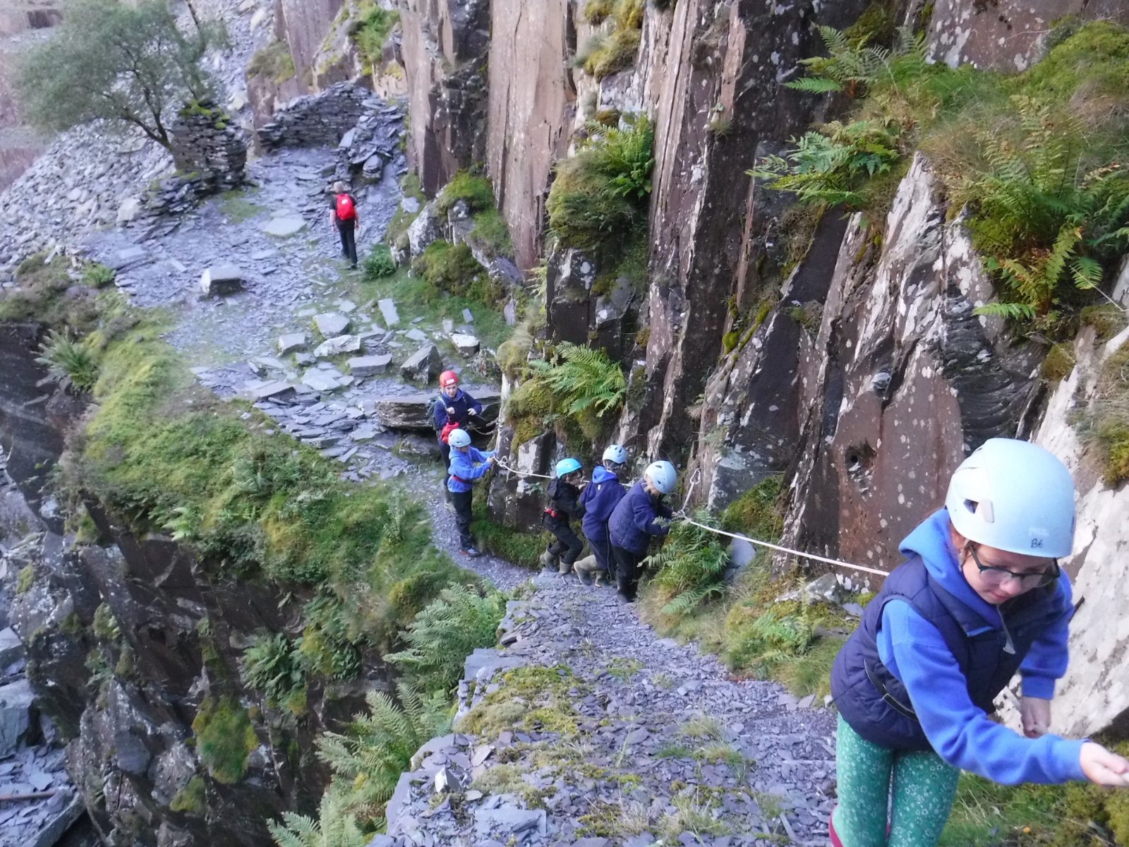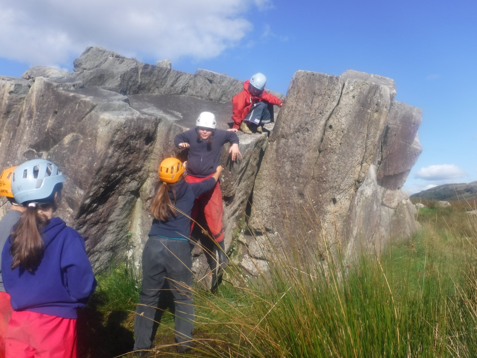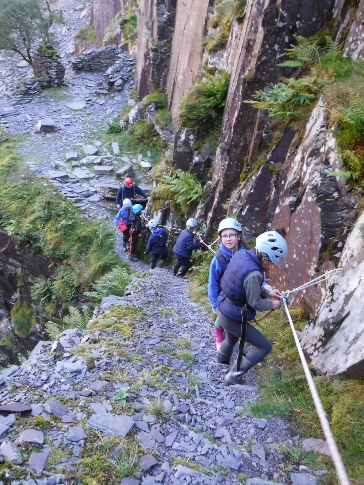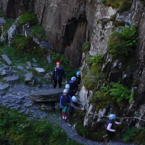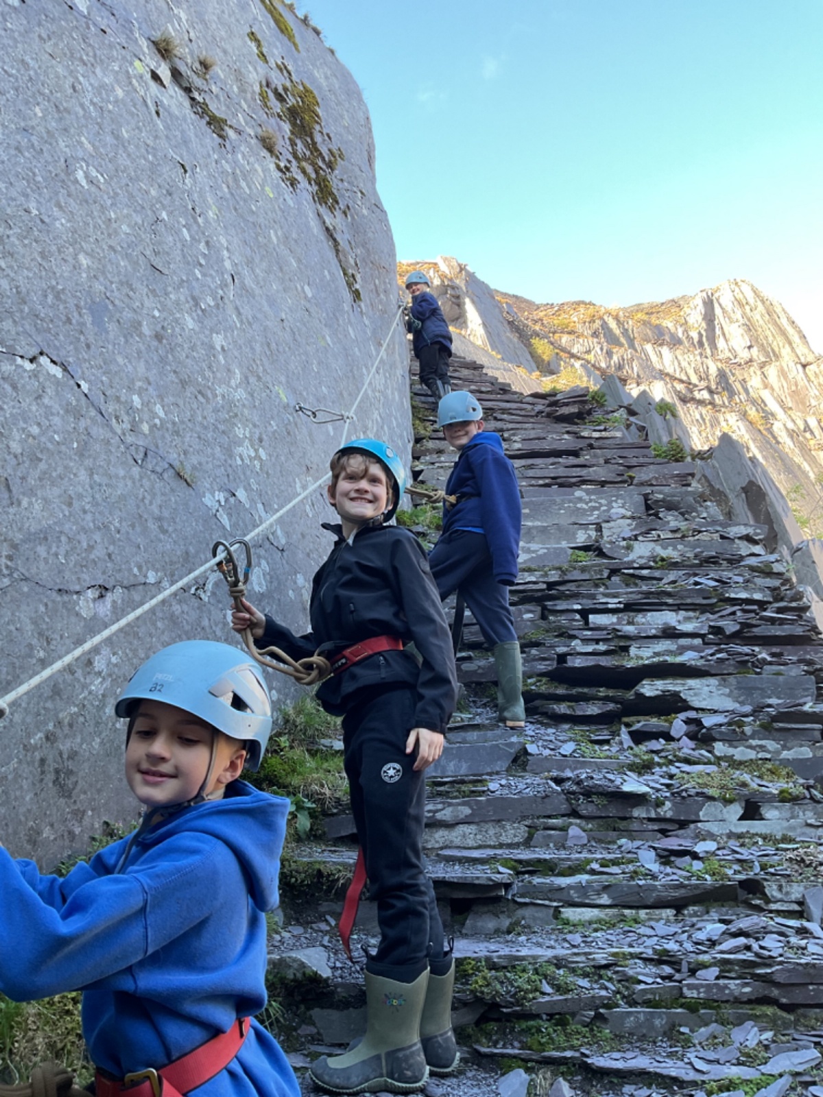 Today we left school and made the long journey to Snowdonia in North Wales. We arrived safely at the Arete Centre in the village of Llanrug and then headed out on our first activities. Holly's group explored holes and passages between boulders at the RAC boulders as they went weaselling. Jez's group donned harnesses and cowtails and practised their cliplining skills as they climbed in a quarry. Dan's group headed to Lion Rock near Llyn Padarn and went rock climbing. After our delicious evening meal, our first night activity was a walk along the coast to Caernarfon Castle. It was stunning first day!