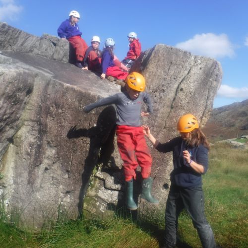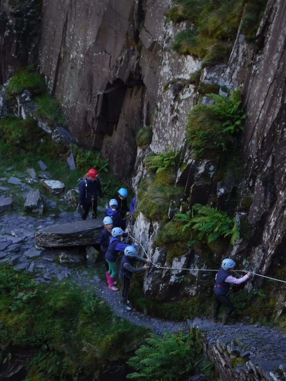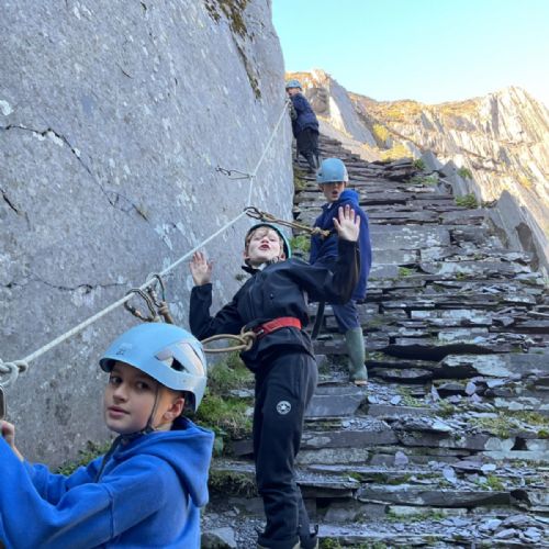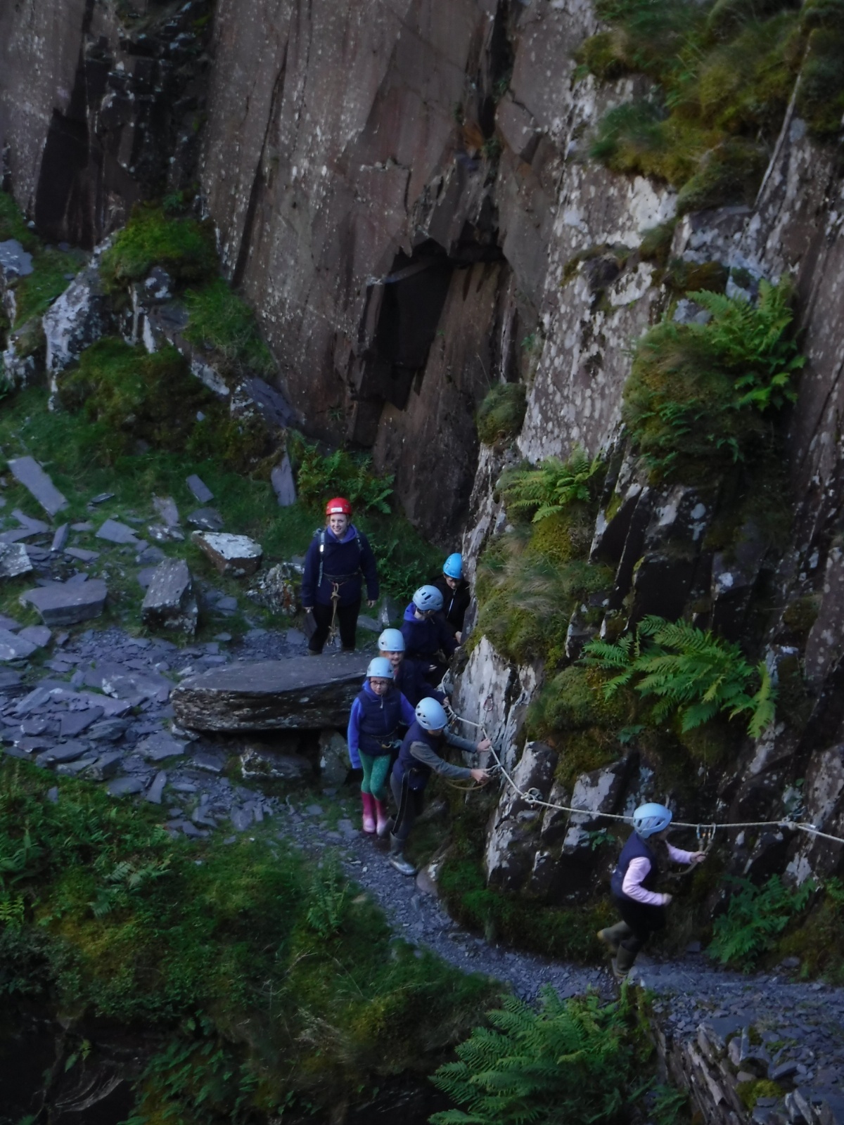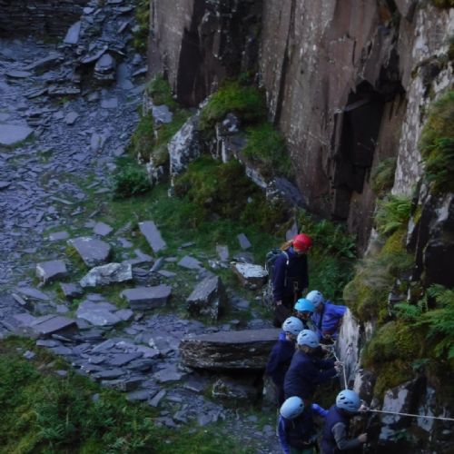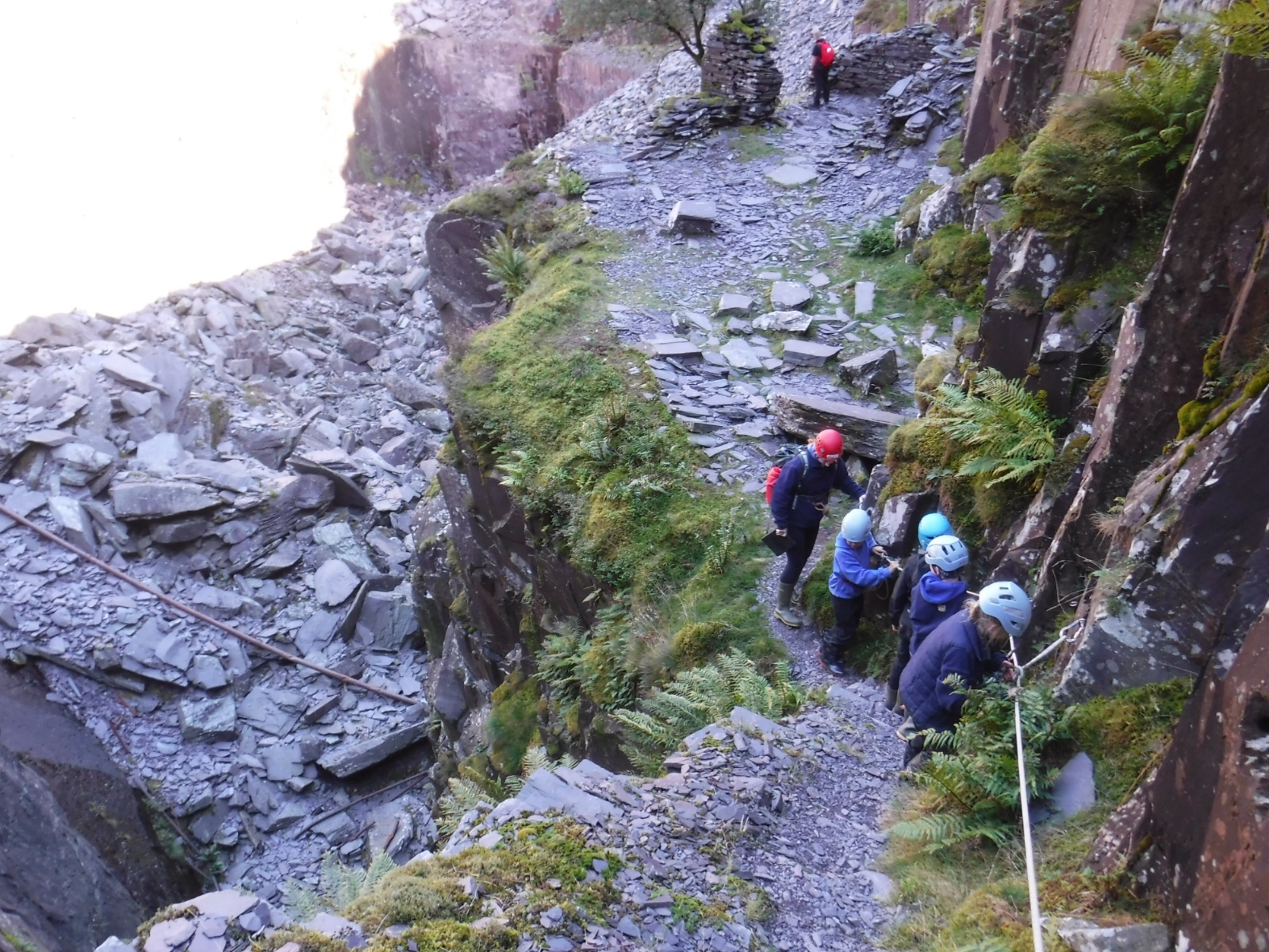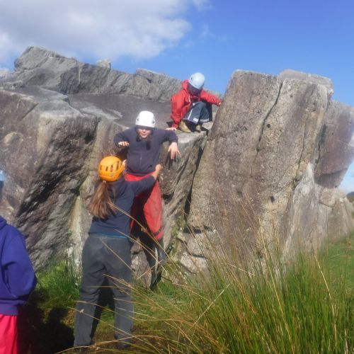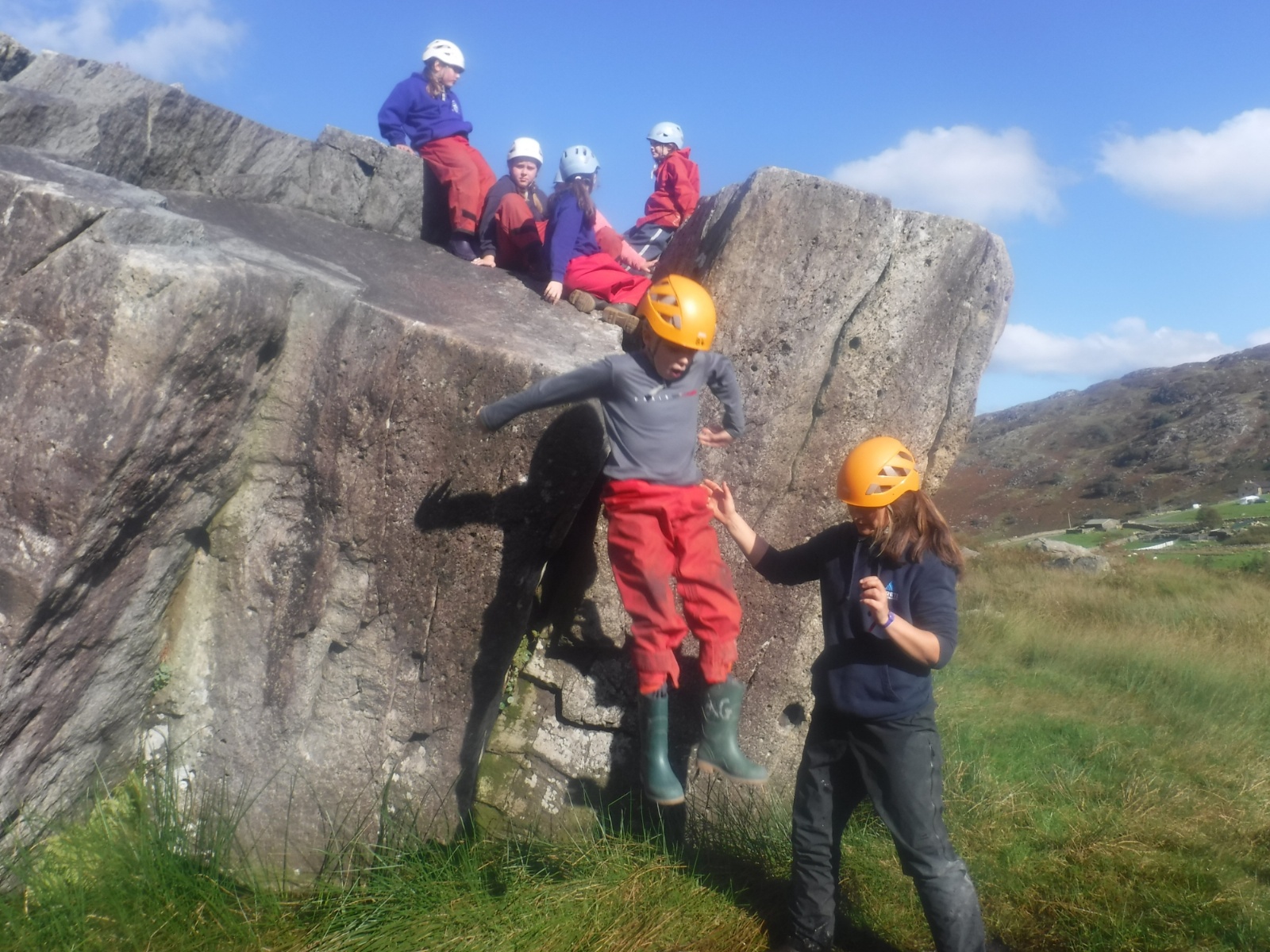 Today we left school and made the long journey to Snowdonia in North Wales. We arrived safely at the Arete Centre in the village of Llanrug and then headed out on our first activities. Holly's group explored holes and passages between boulders at the RAC boulders as they went weaselling. Jez's group donned harnesses and cowtails and practised their cliplining skills as they climbed in a quarry. Dan's group headed to Lion Rock near Llyn Padarn and went rock climbing. After our delicious evening meal, our first night activity was a walk along the coast to Caernarfon Castle. It was stunning first day!