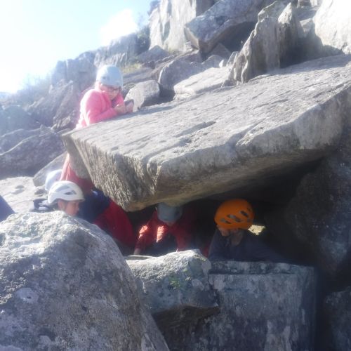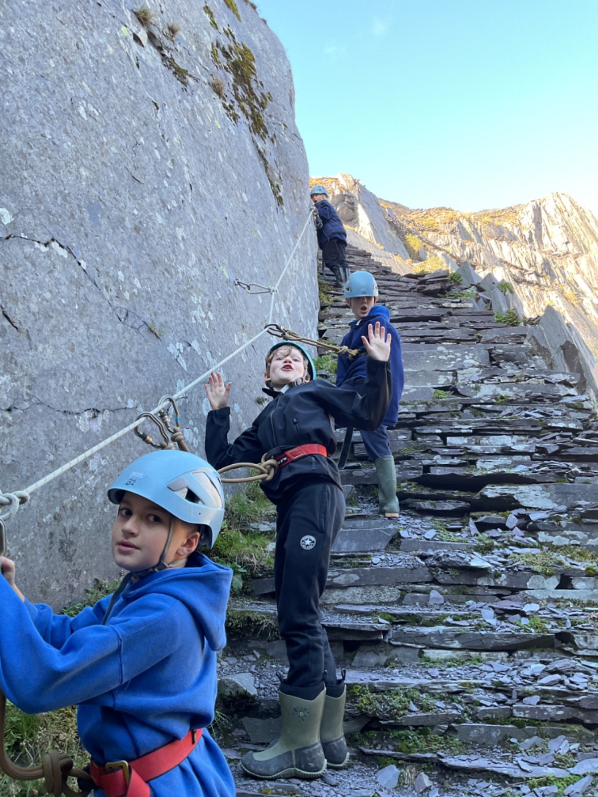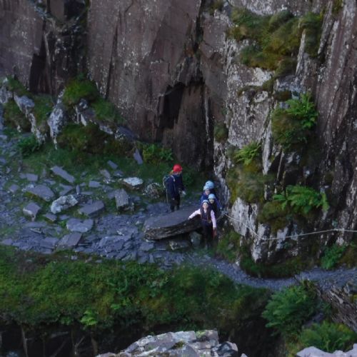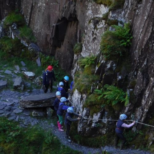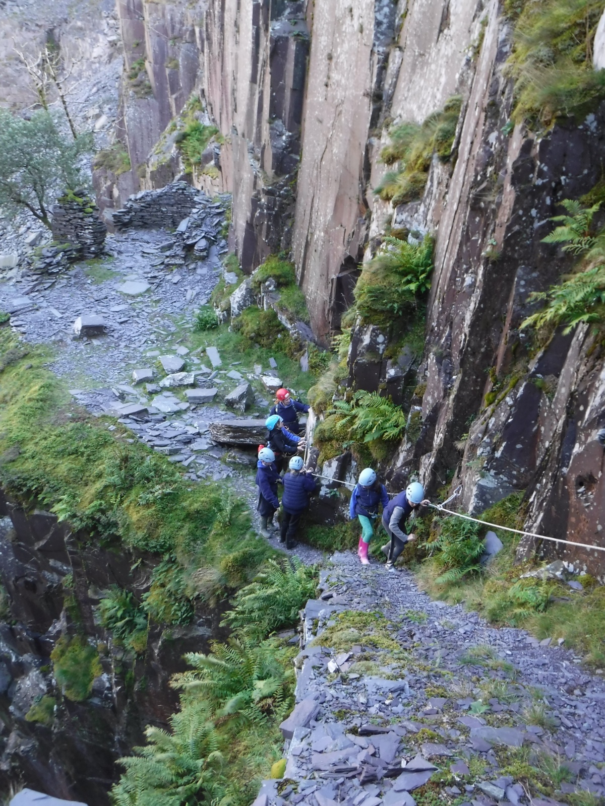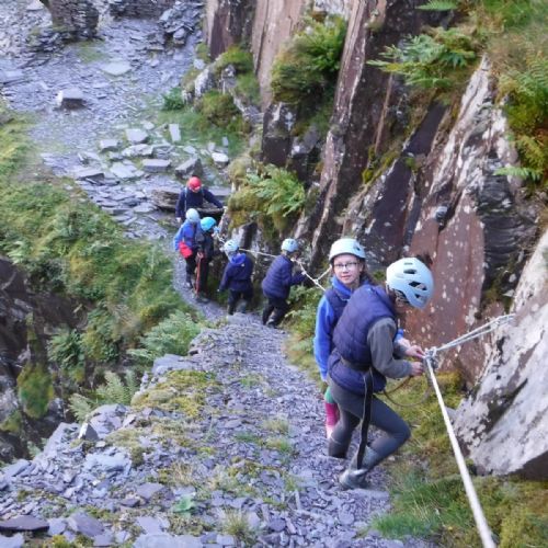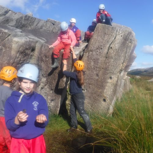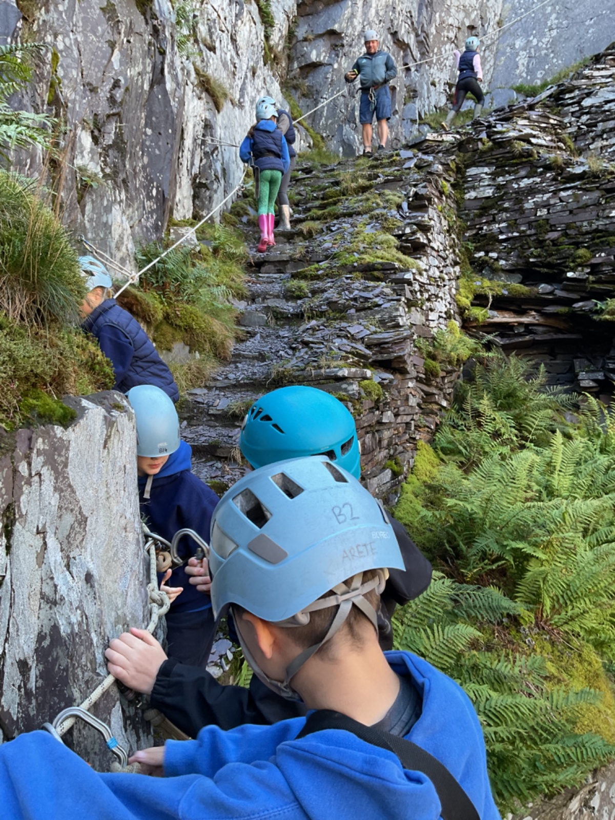 Today we left school and made the long journey to Snowdonia in North Wales. We arrived safely at the Arete Centre in the village of Llanrug and then headed out on our first activities. Holly's group explored holes and passages between boulders at the RAC boulders as they went weaselling. Jez's group donned harnesses and cowtails and practised their cliplining skills as they climbed in a quarry. Dan's group headed to Lion Rock near Llyn Padarn and went rock climbing. After our delicious evening meal, our first night activity was a walk along the coast to Caernarfon Castle. It was stunning first day!