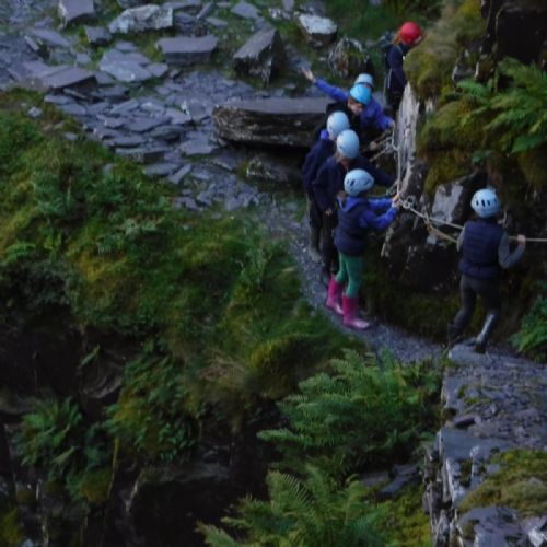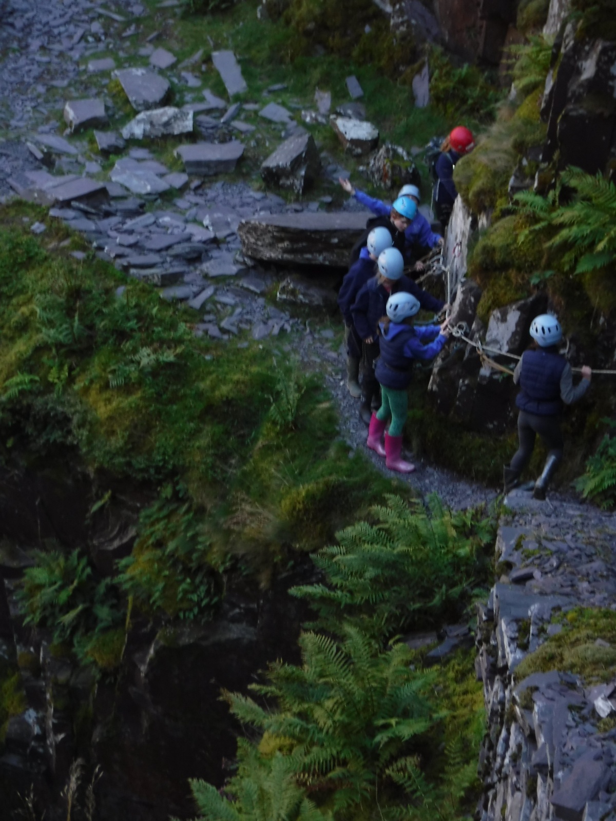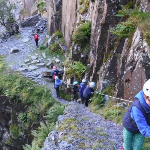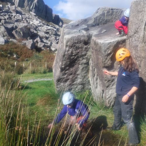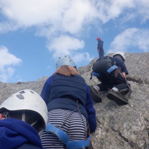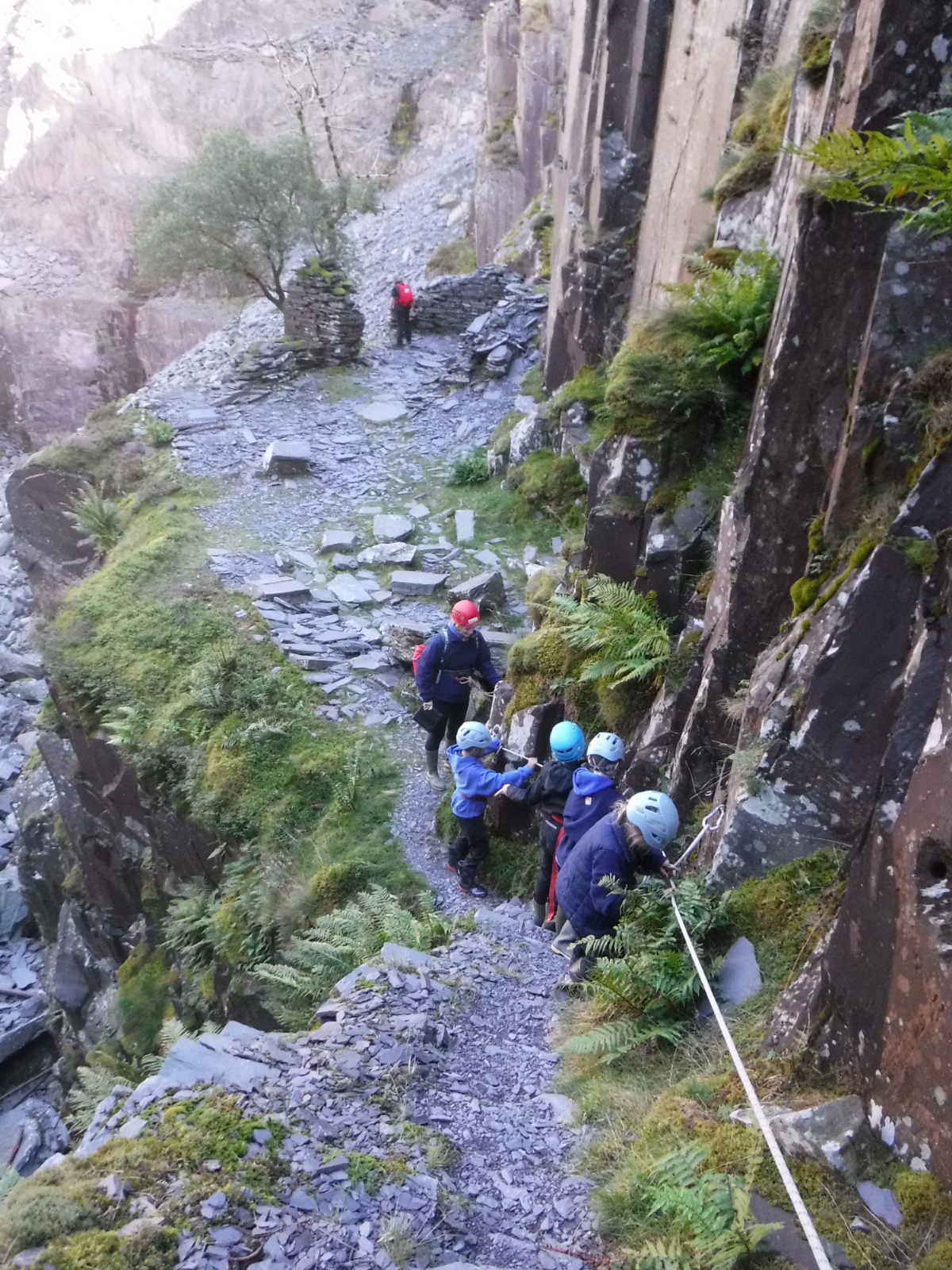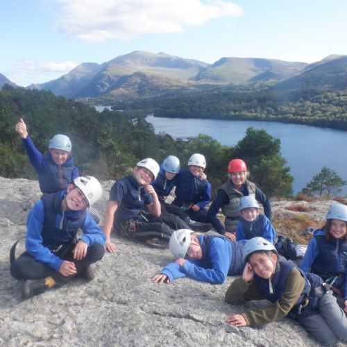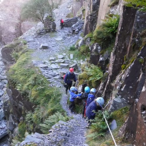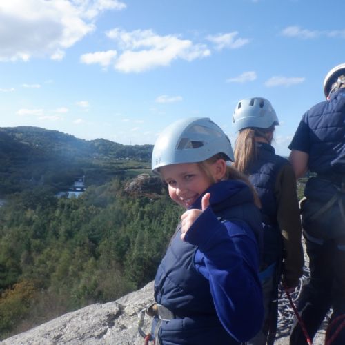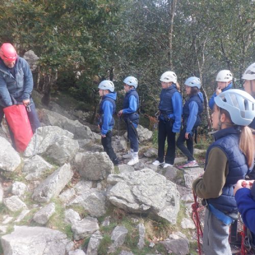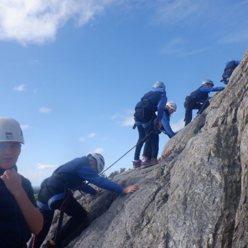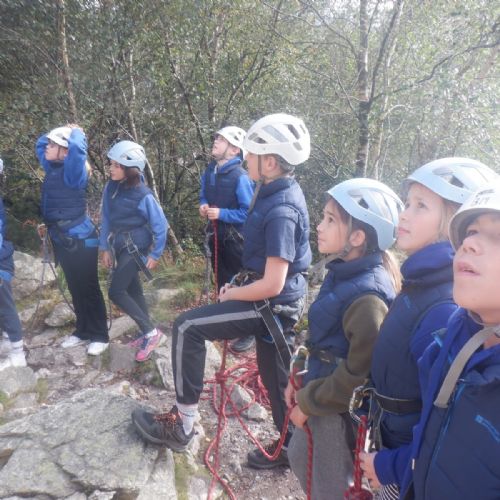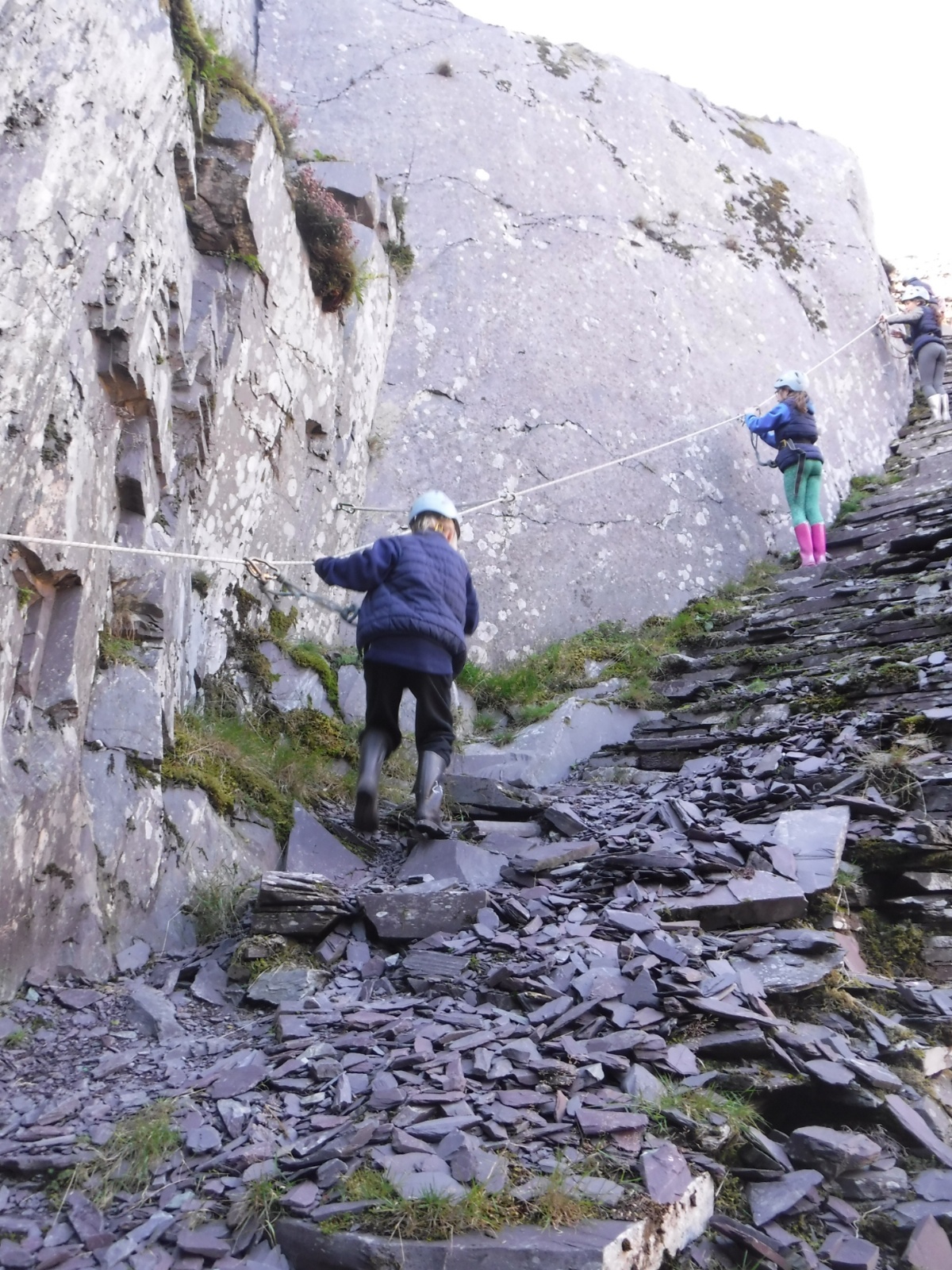 Today we left school and made the long journey to Snowdonia in North Wales. We arrived safely at the Arete Centre in the village of Llanrug and then headed out on our first activities. Holly's group explored holes and passages between boulders at the RAC boulders as they went weaselling. Jez's group donned harnesses and cowtails and practised their cliplining skills as they climbed in a quarry. Dan's group headed to Lion Rock near Llyn Padarn and went rock climbing. After our delicious evening meal, our first night activity was a walk along the coast to Caernarfon Castle. It was stunning first day!