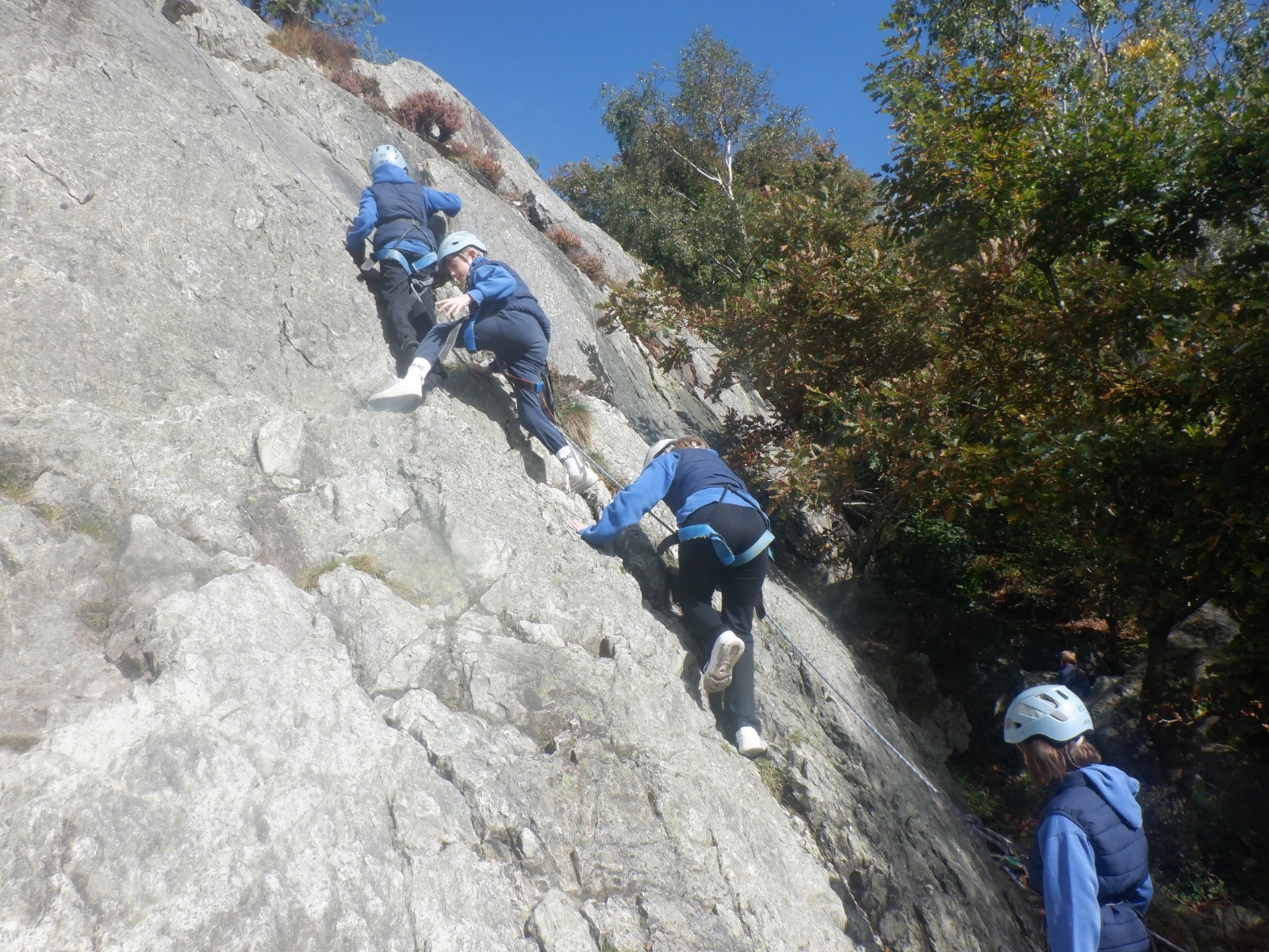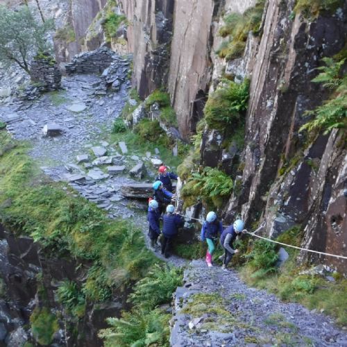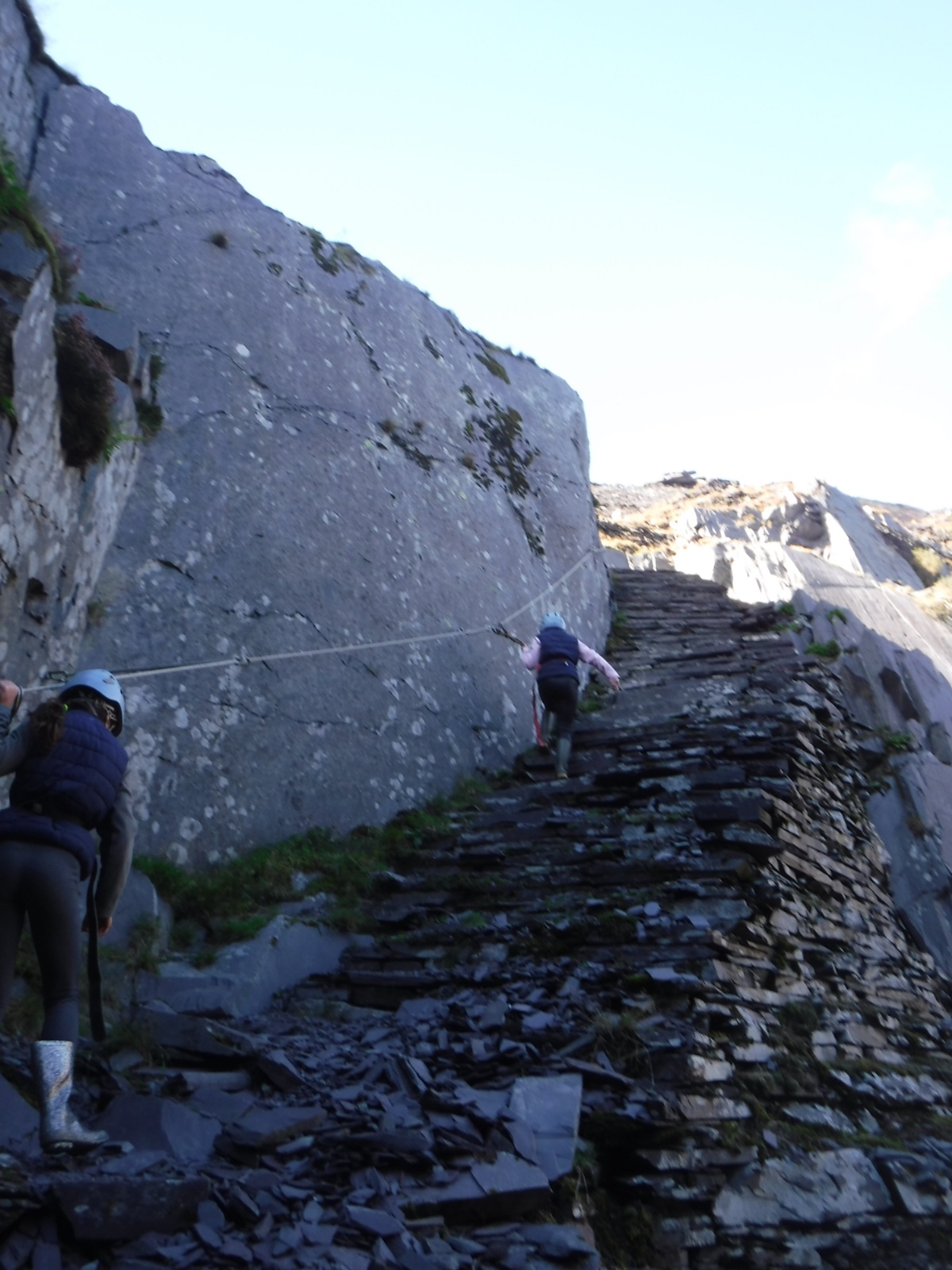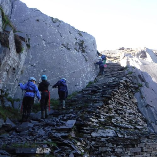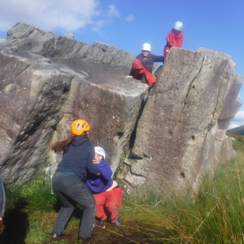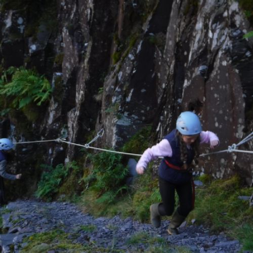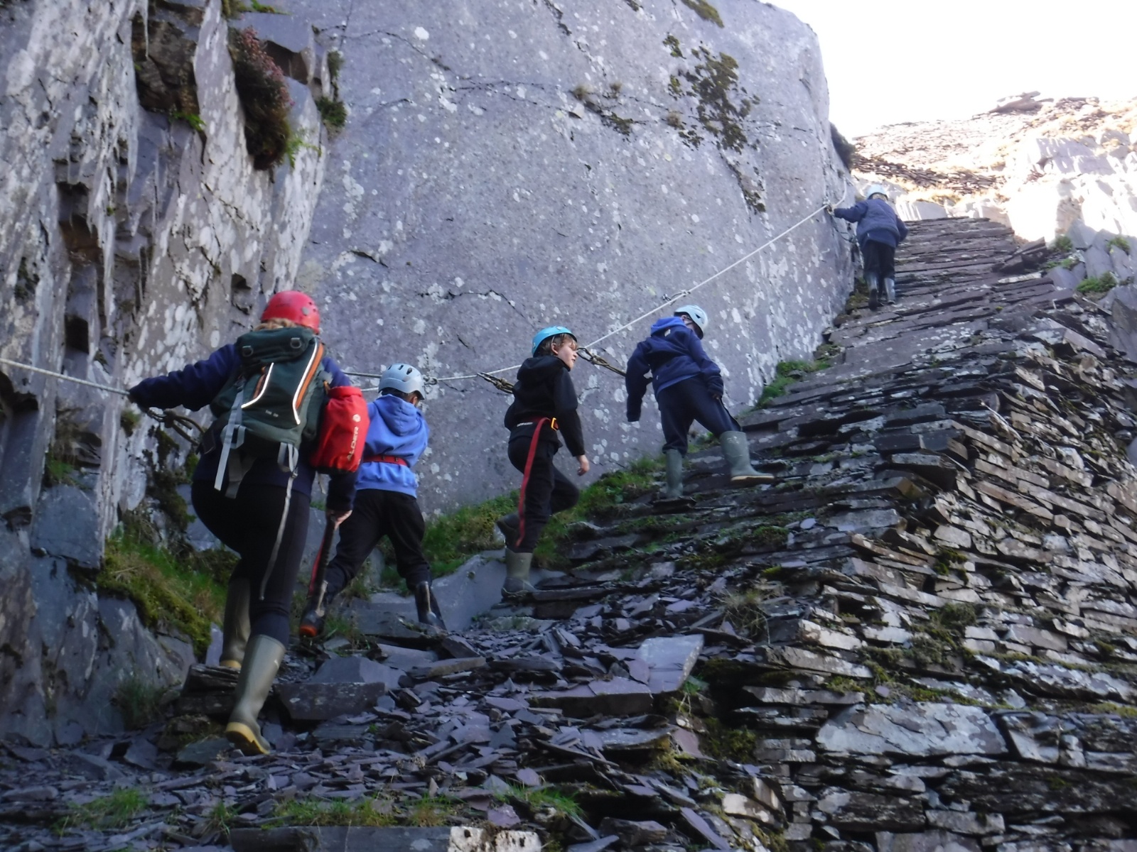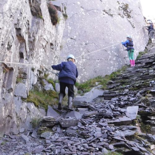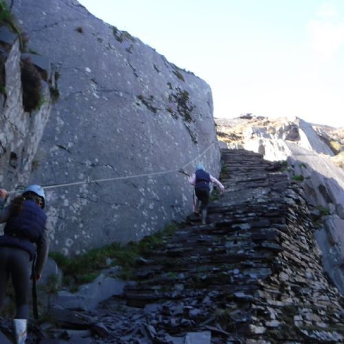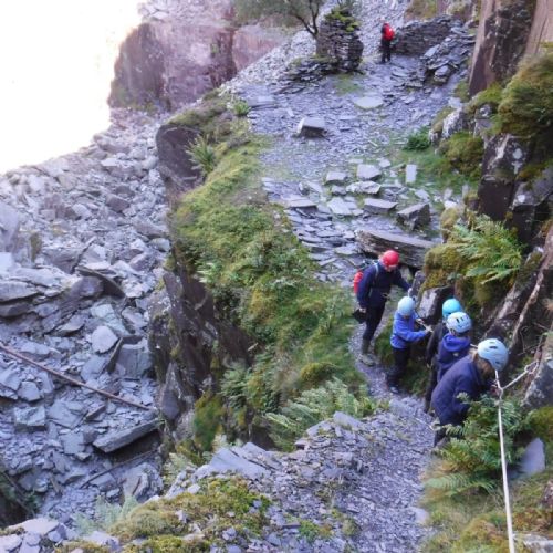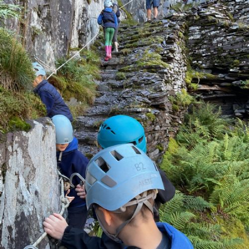 Today we left school and made the long journey to Snowdonia in North Wales. We arrived safely at the Arete Centre in the village of Llanrug and then headed out on our first activities. Holly's group explored holes and passages between boulders at the RAC boulders as they went weaselling. Jez's group donned harnesses and cowtails and practised their cliplining skills as they climbed in a quarry. Dan's group headed to Lion Rock near Llyn Padarn and went rock climbing. After our delicious evening meal, our first night activity was a walk along the coast to Caernarfon Castle. It was stunning first day!