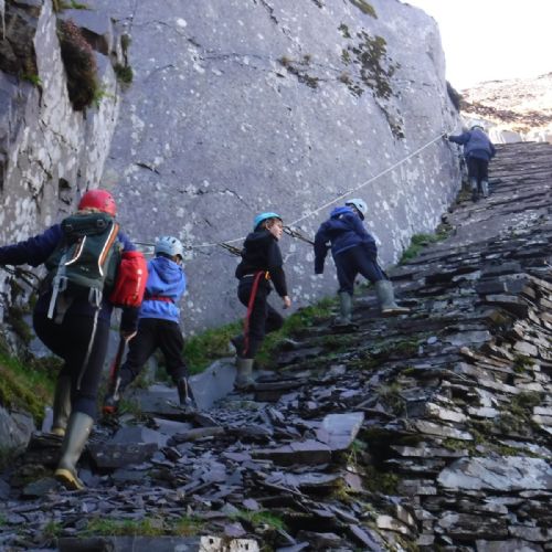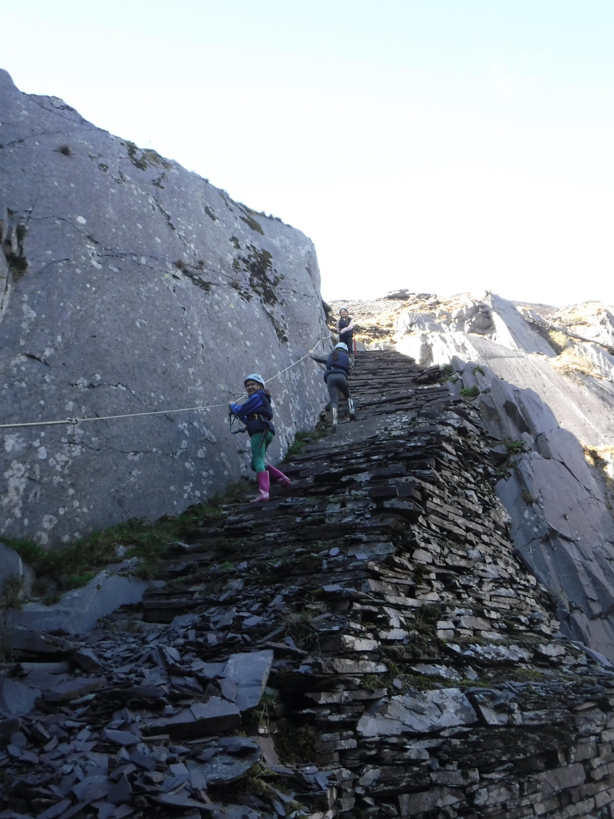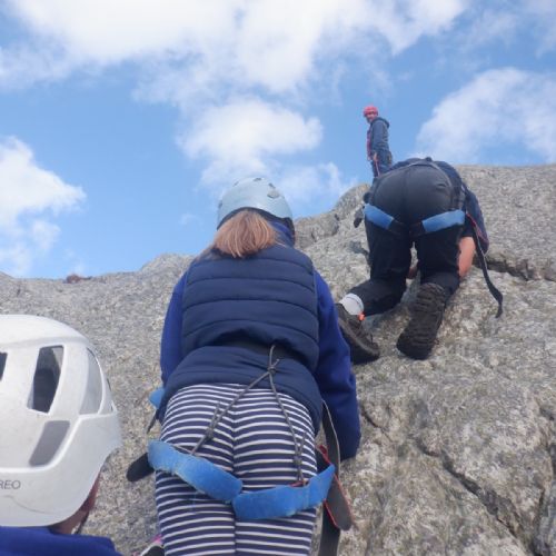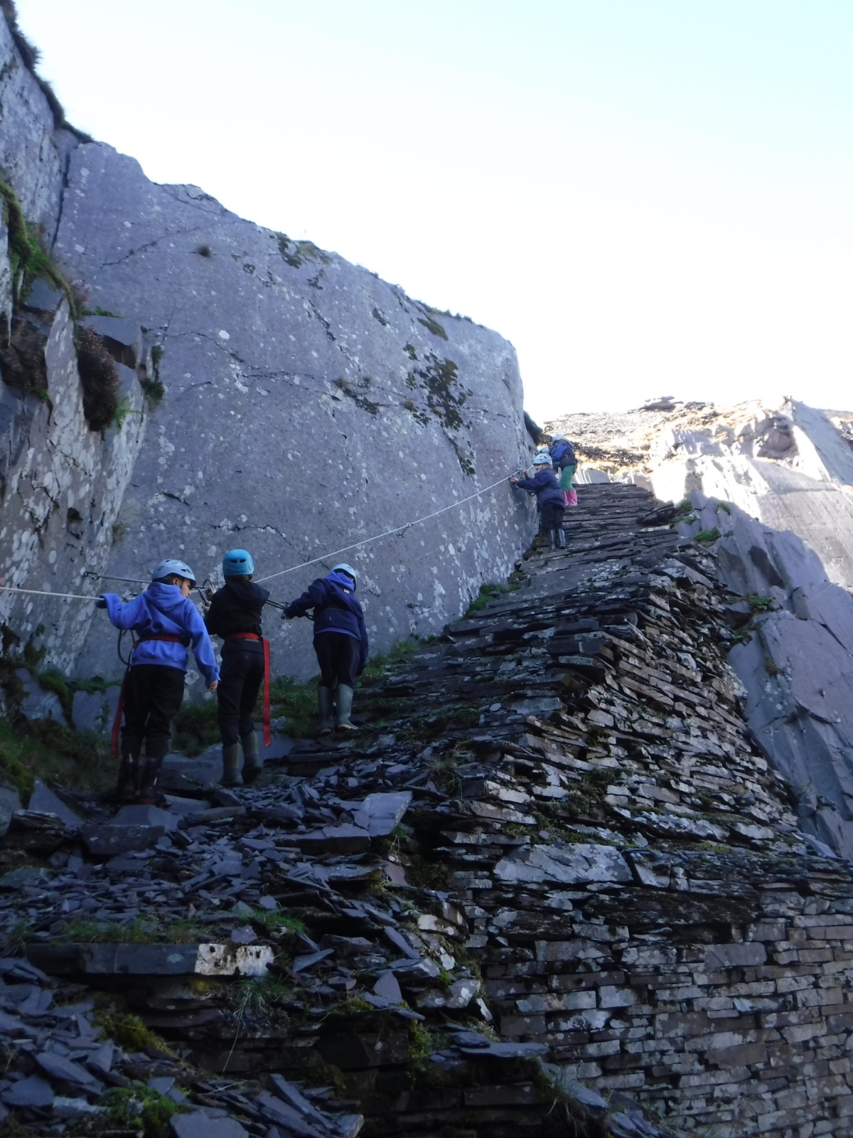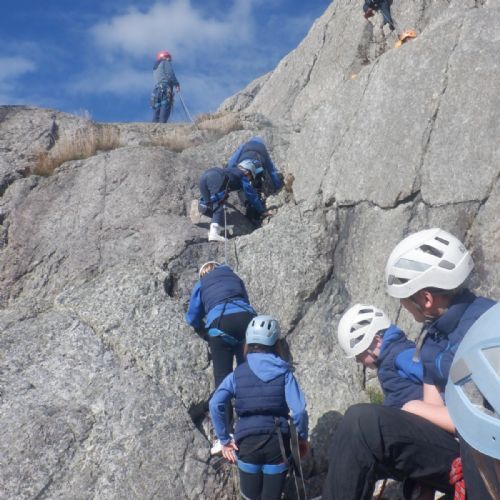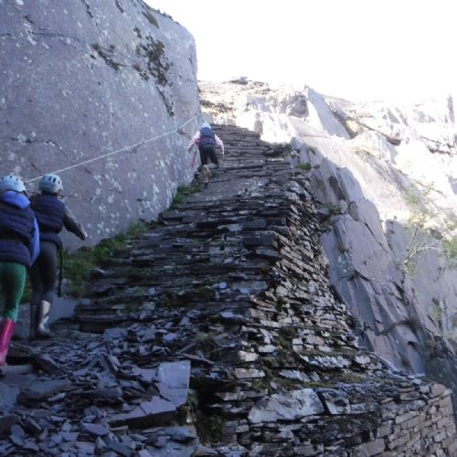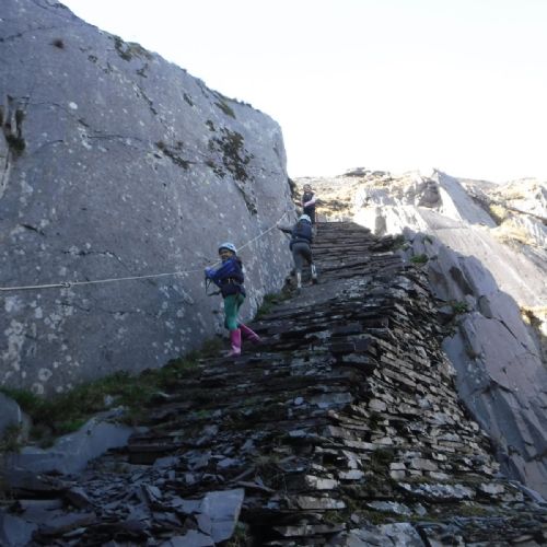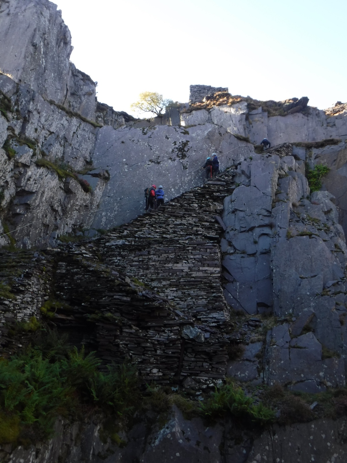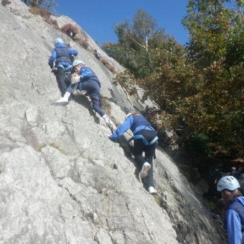 Today we left school and made the long journey to Snowdonia in North Wales. We arrived safely at the Arete Centre in the village of Llanrug and then headed out on our first activities. Holly's group explored holes and passages between boulders at the RAC boulders as they went weaselling. Jez's group donned harnesses and cowtails and practised their cliplining skills as they climbed in a quarry. Dan's group headed to Lion Rock near Llyn Padarn and went rock climbing. After our delicious evening meal, our first night activity was a walk along the coast to Caernarfon Castle. It was stunning first day!