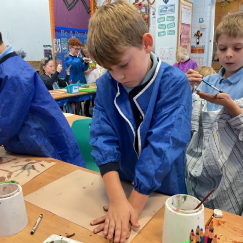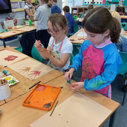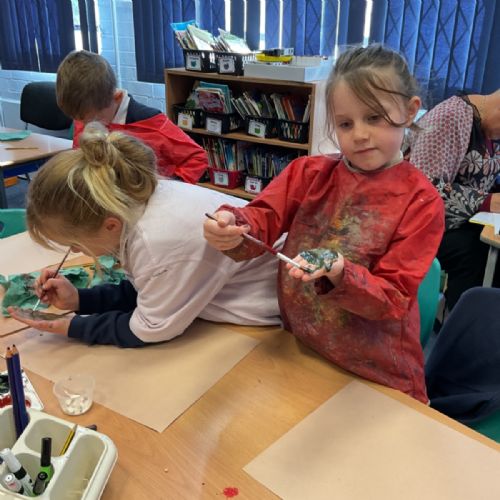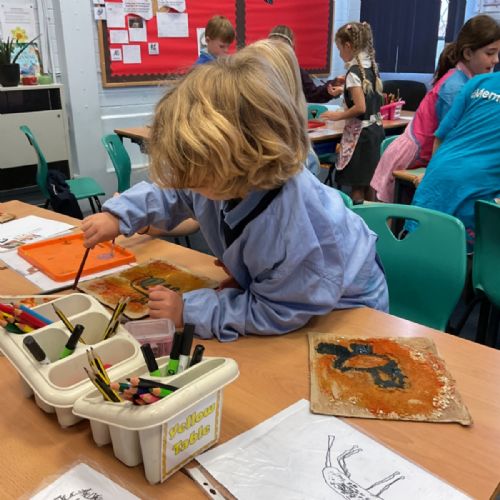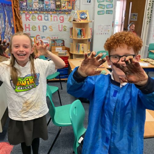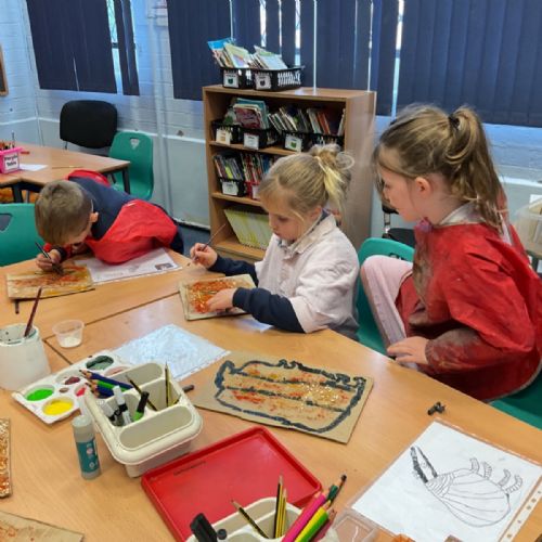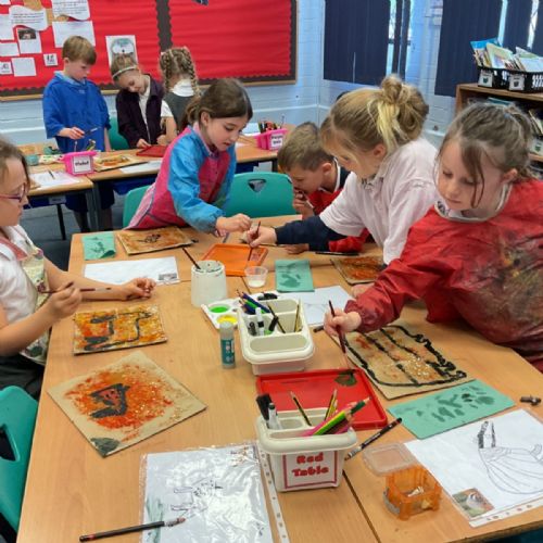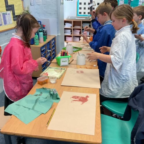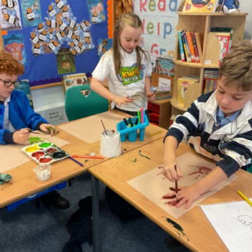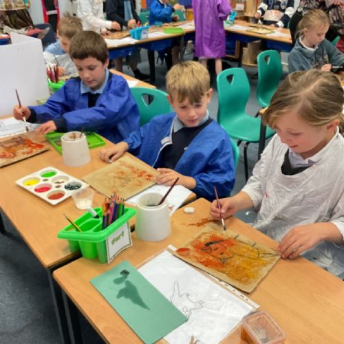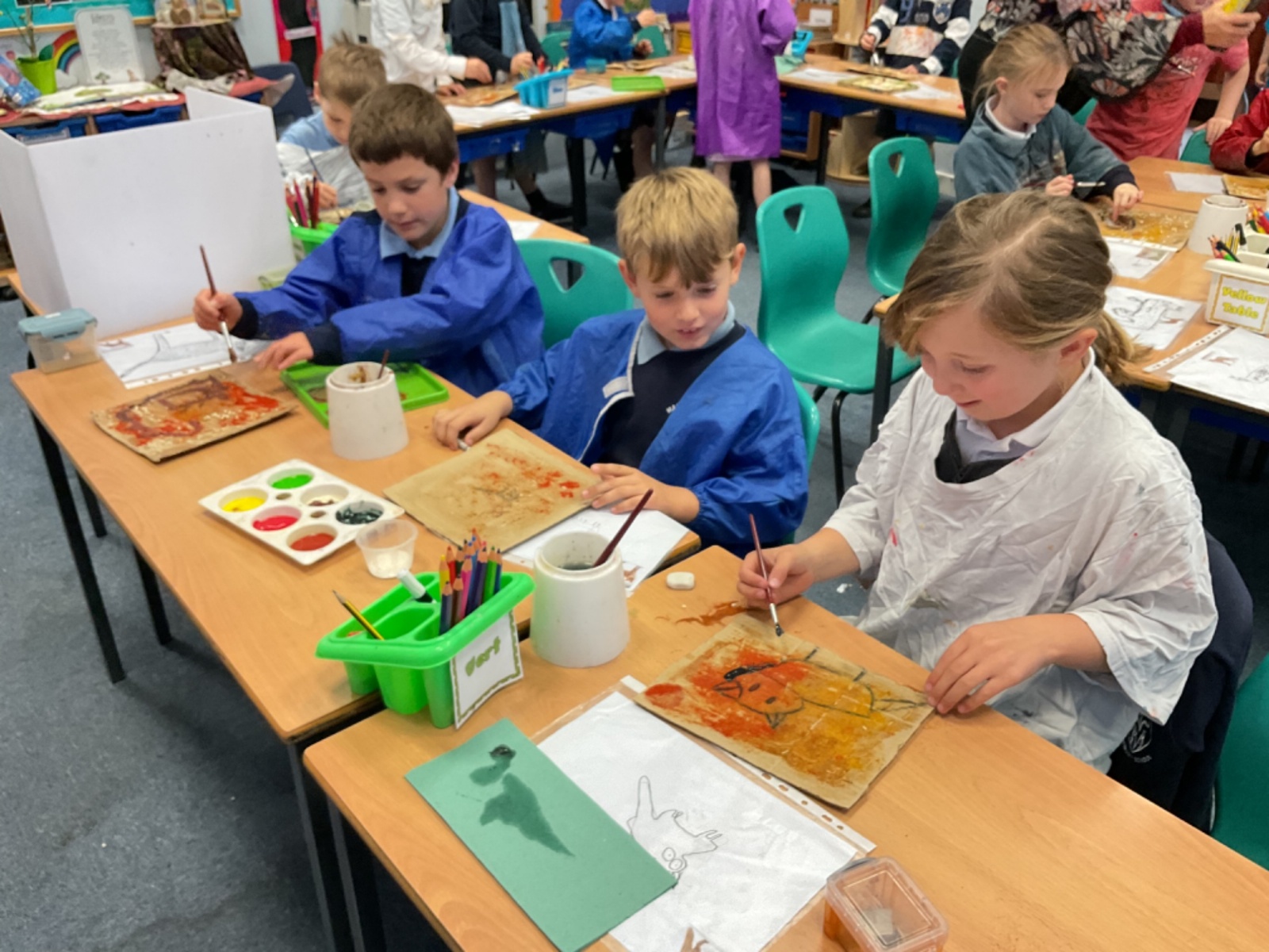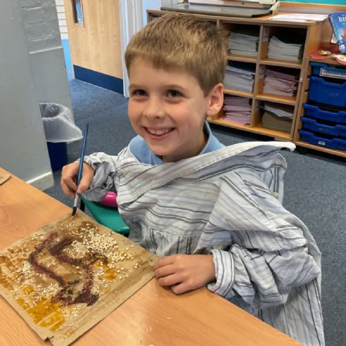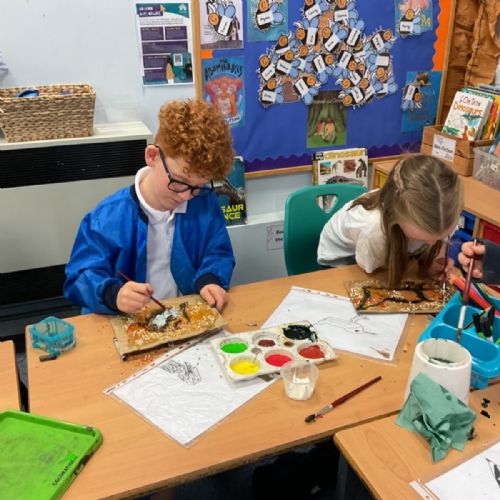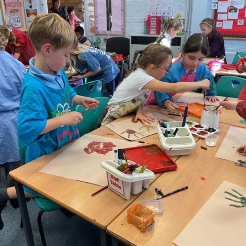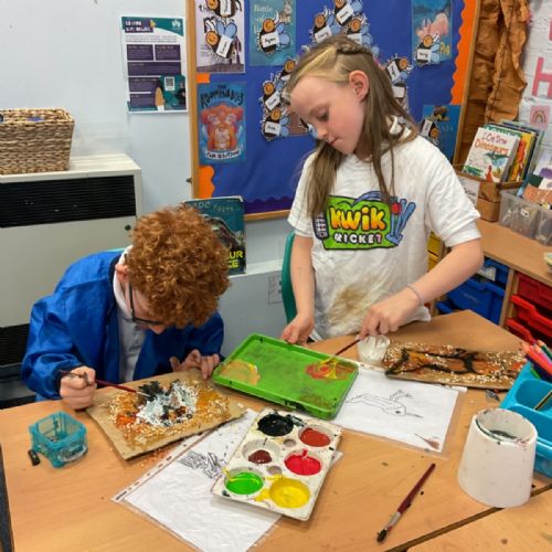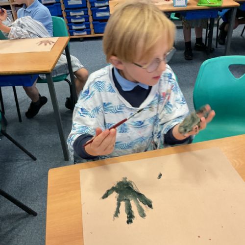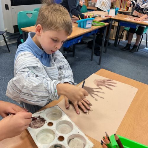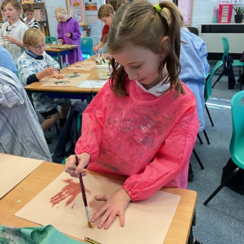 The children enjoyed taking inspiration from cave paintings in the Stone Age to create their own cave wall paintings.