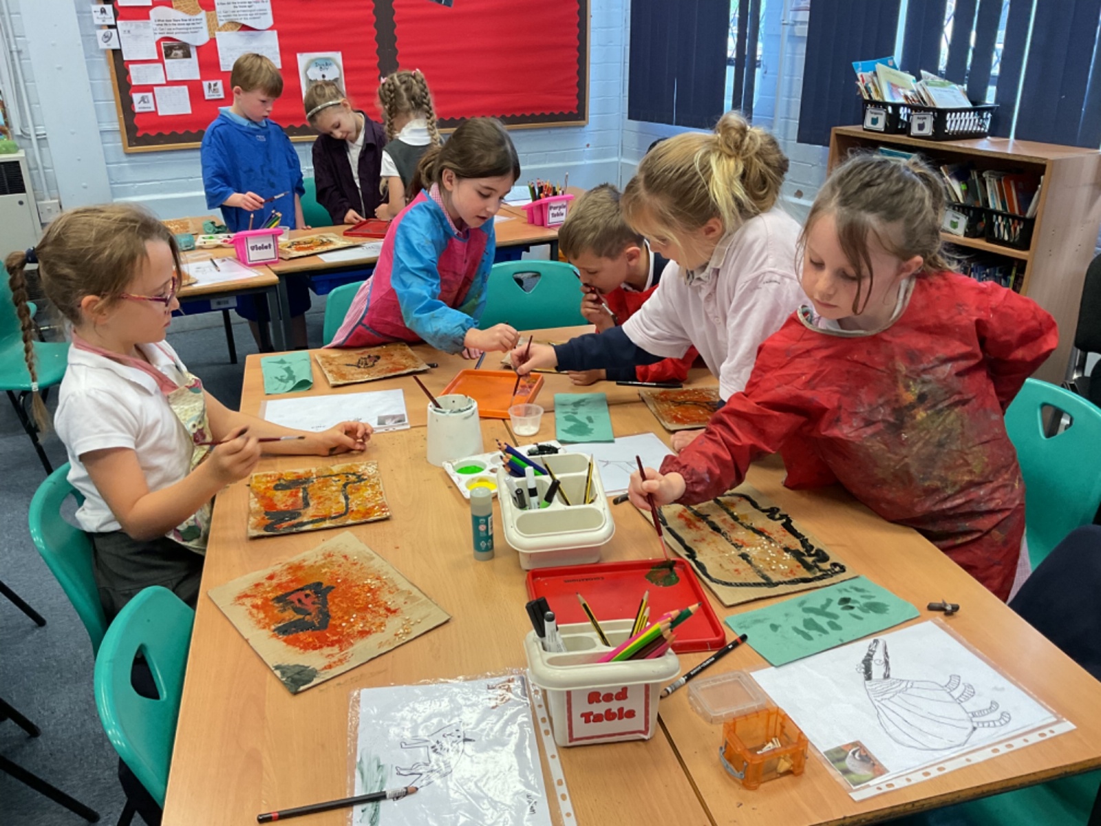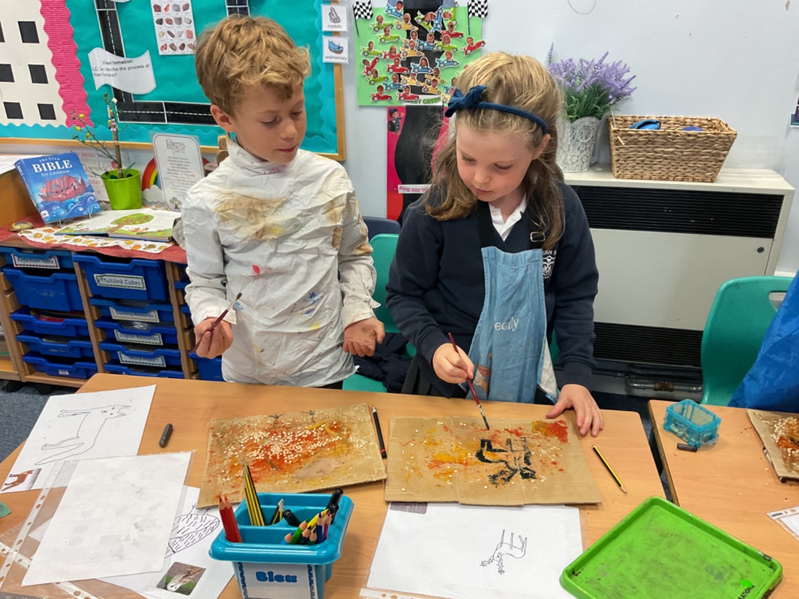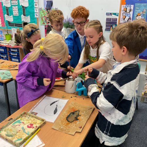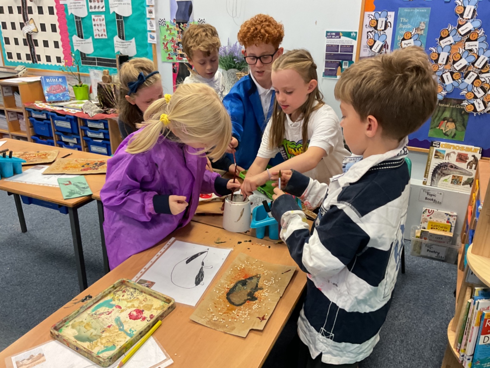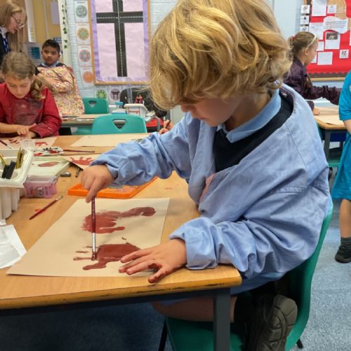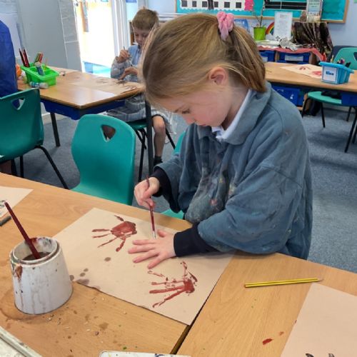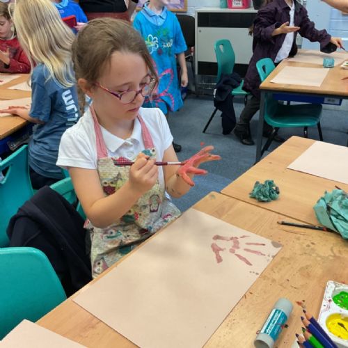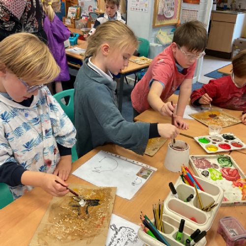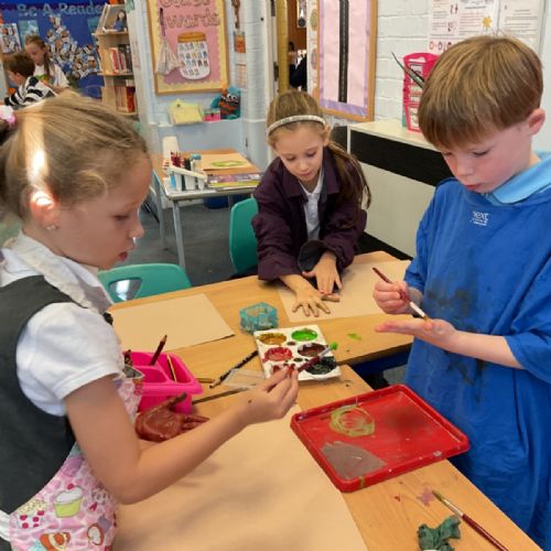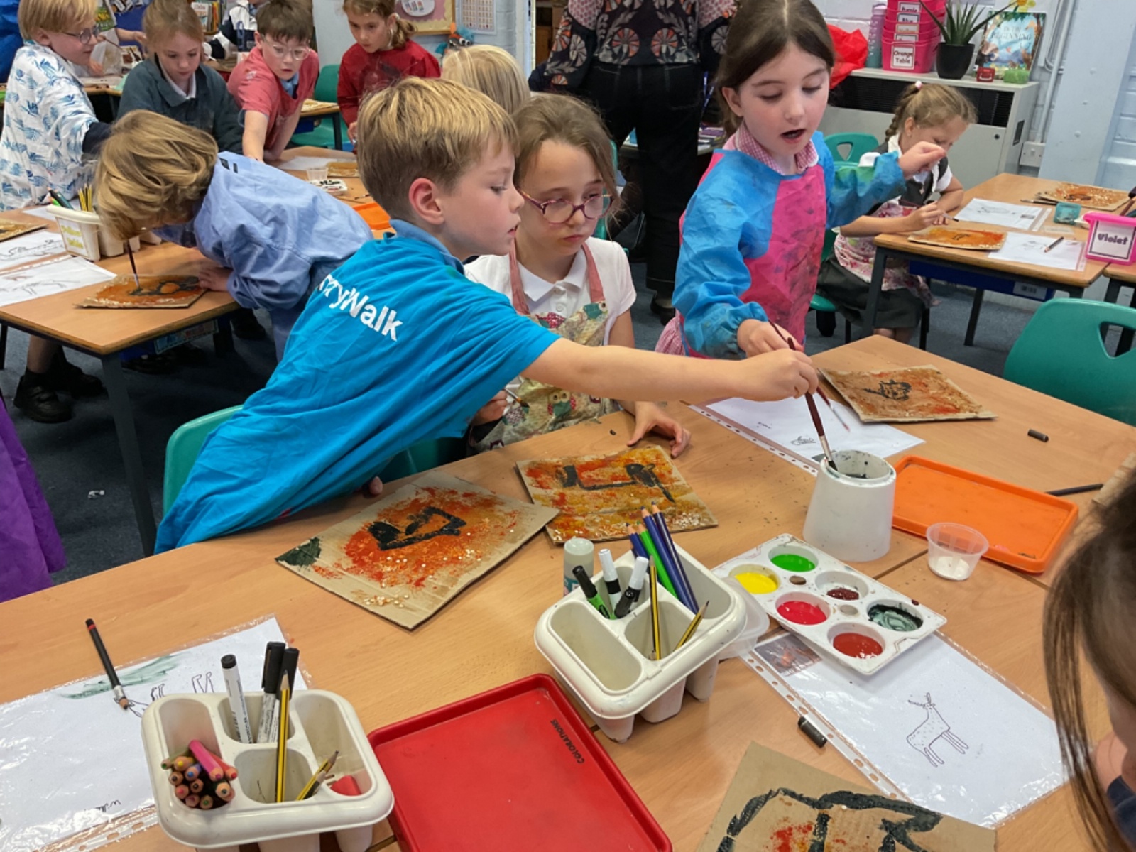 The children enjoyed taking inspiration from cave paintings in the Stone Age to create their own cave wall paintings.