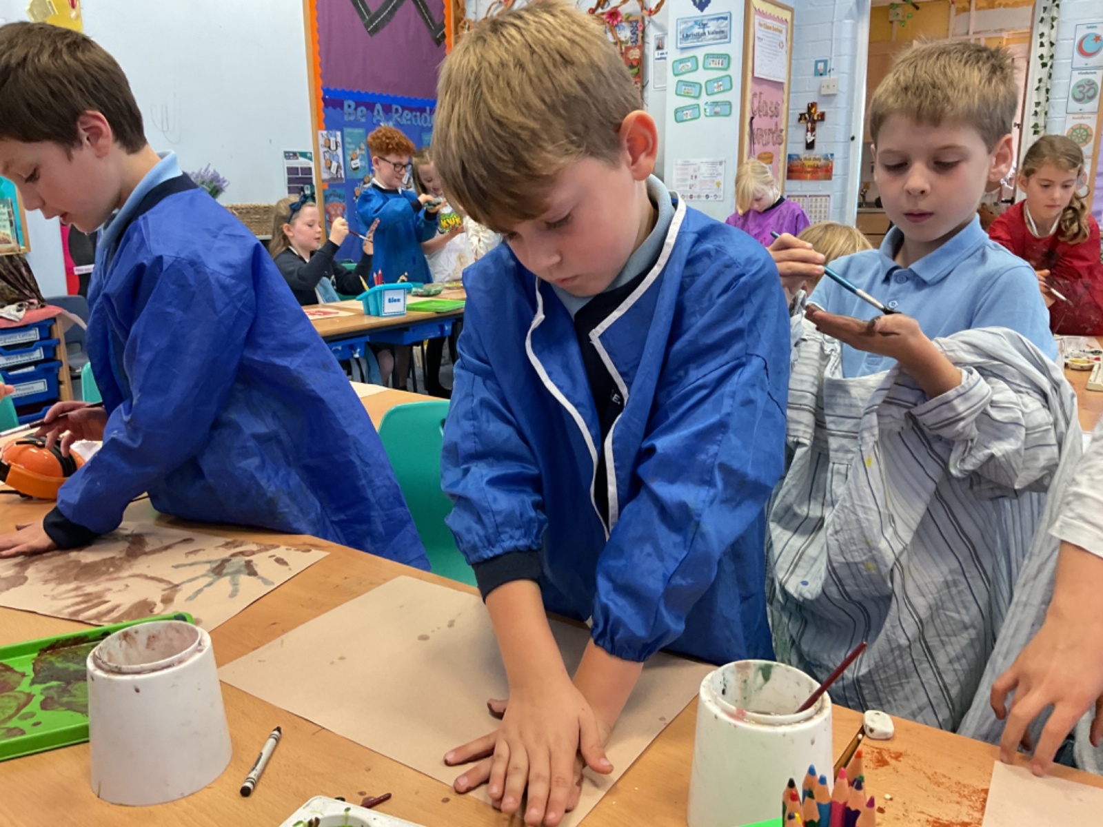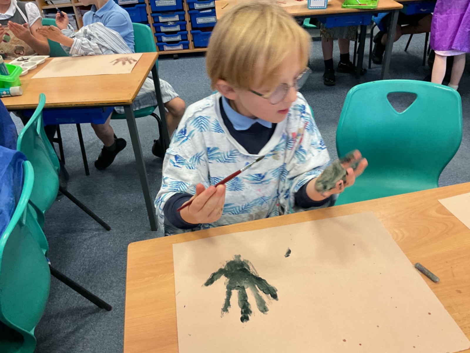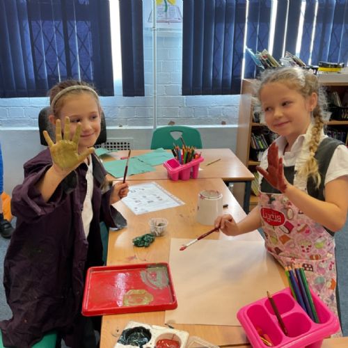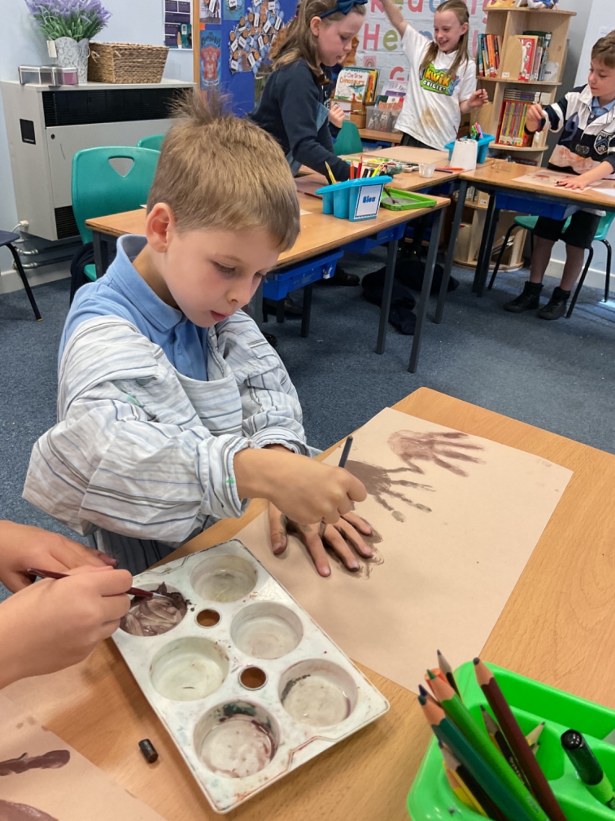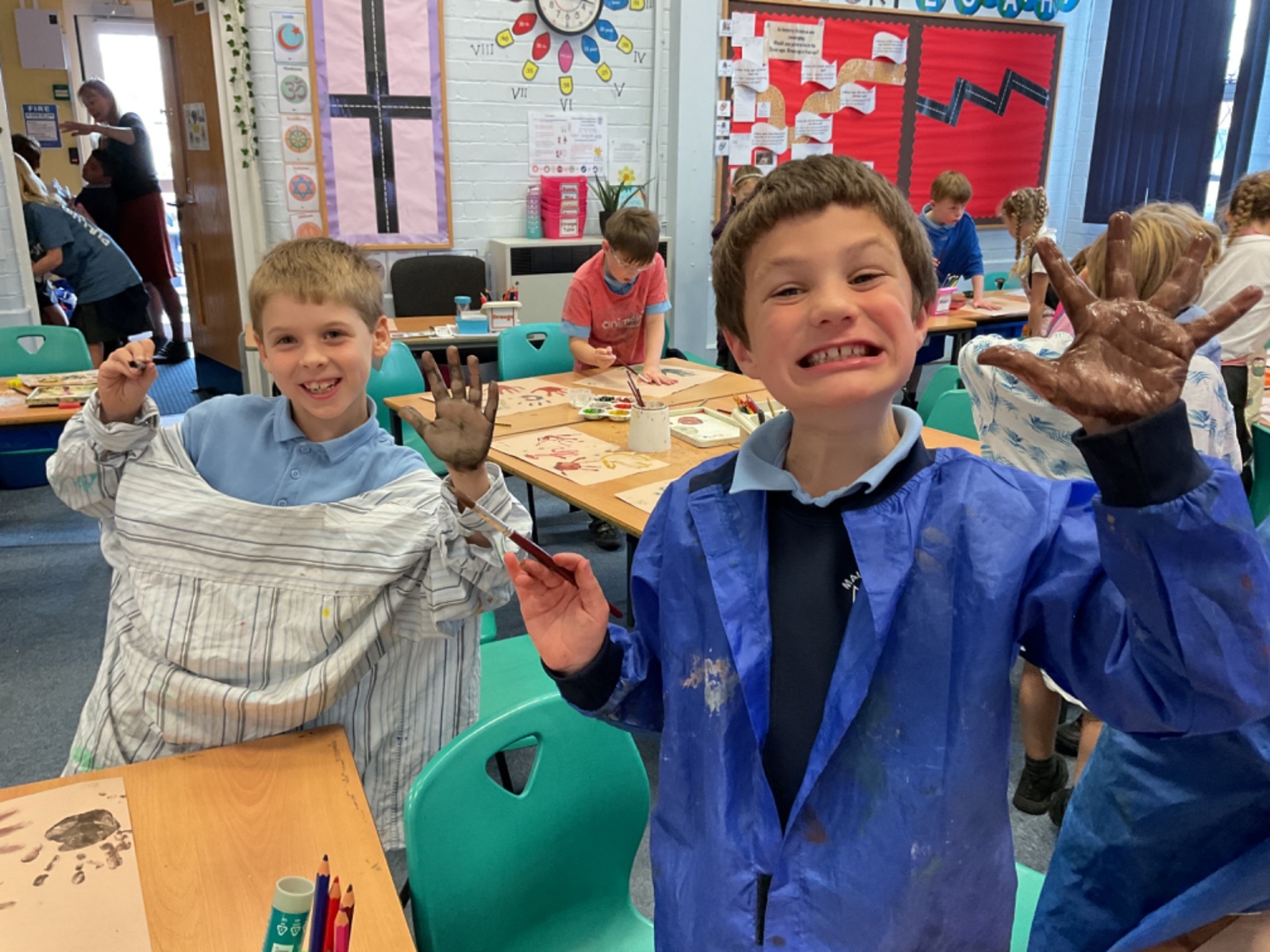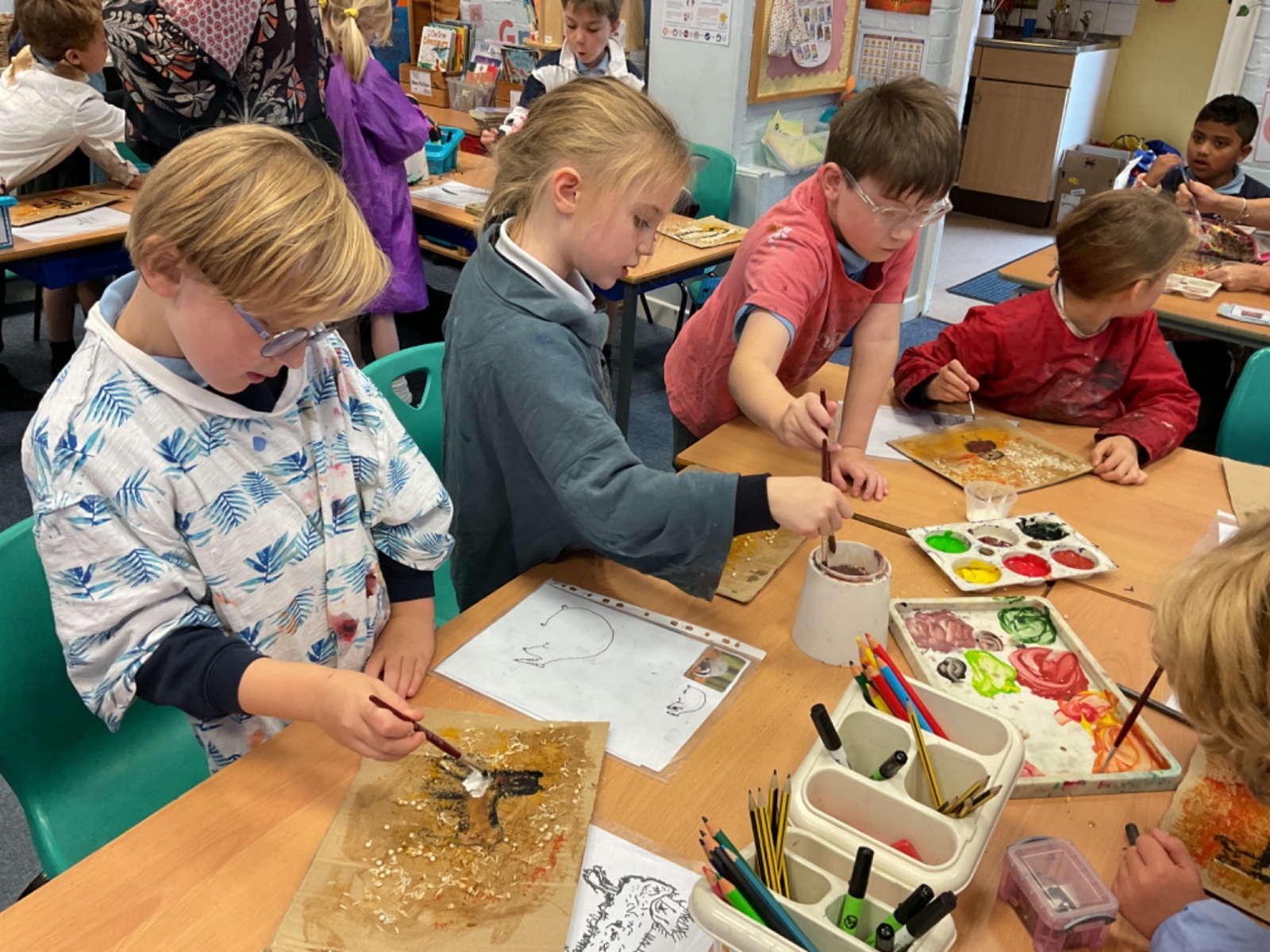 The children enjoyed taking inspiration from cave paintings in the Stone Age to create their own cave wall paintings.