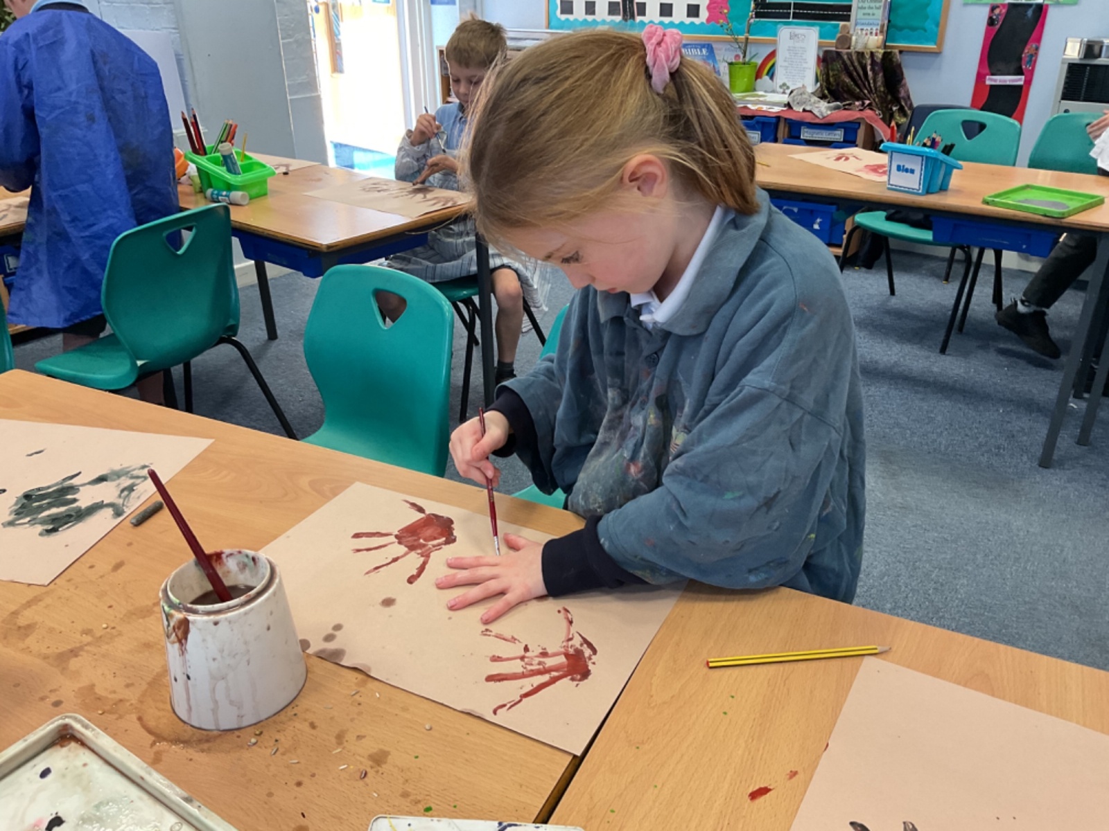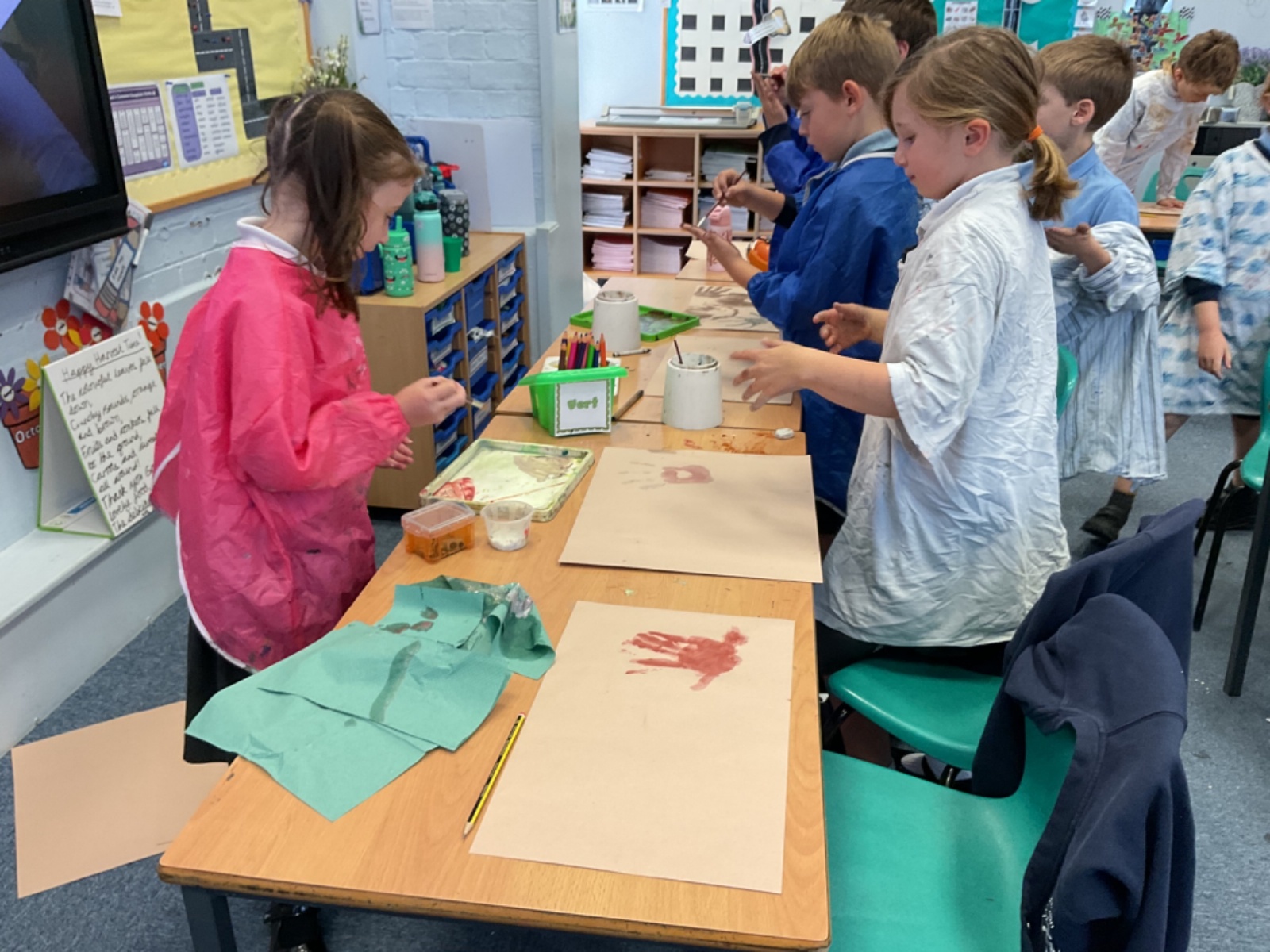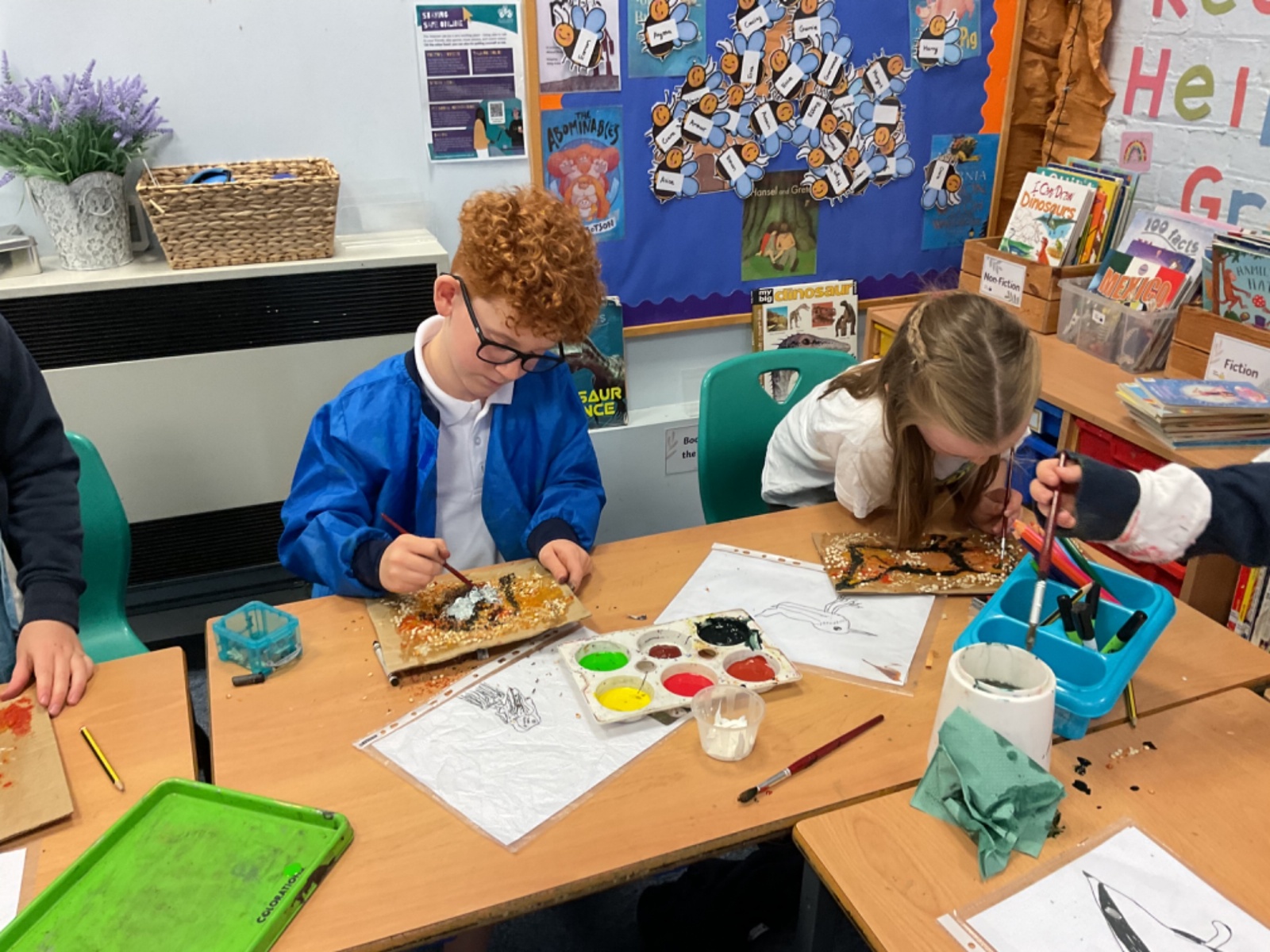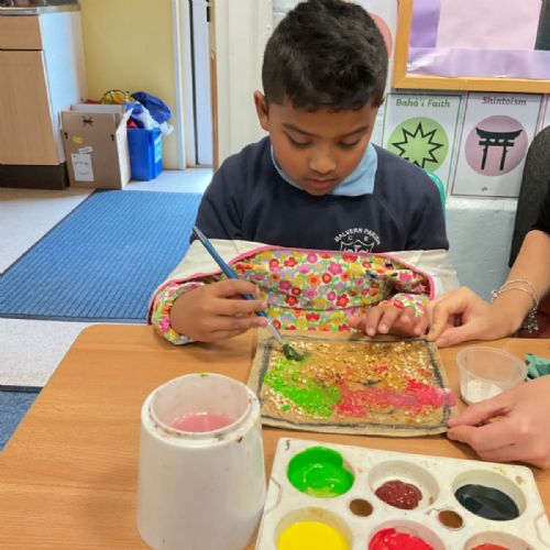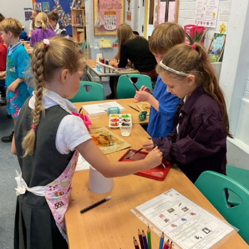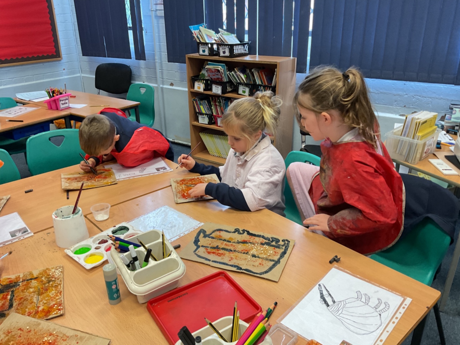 The children enjoyed taking inspiration from cave paintings in the Stone Age to create their own cave wall paintings.