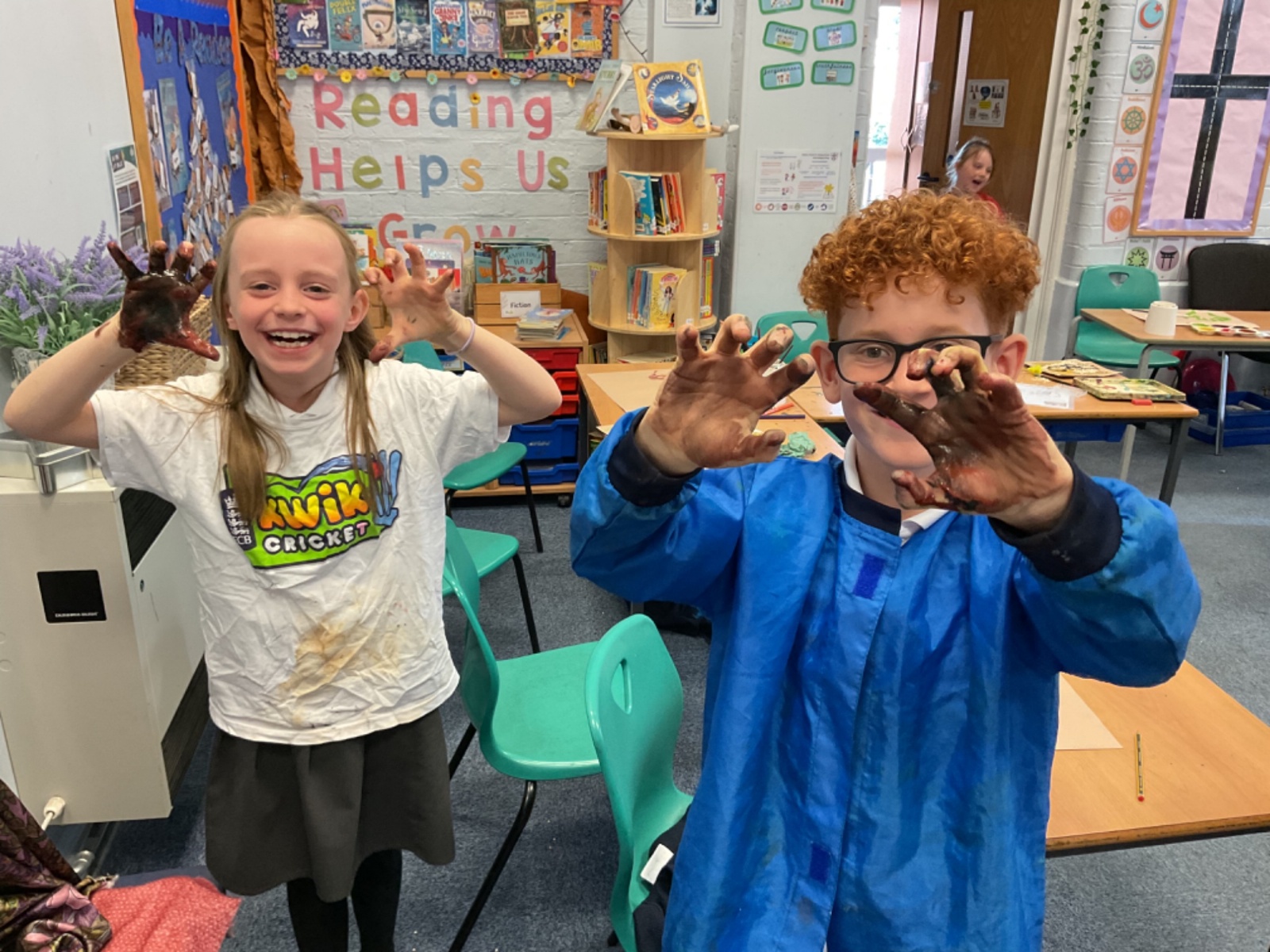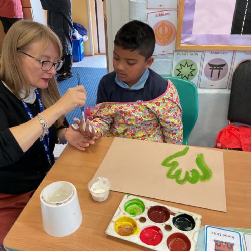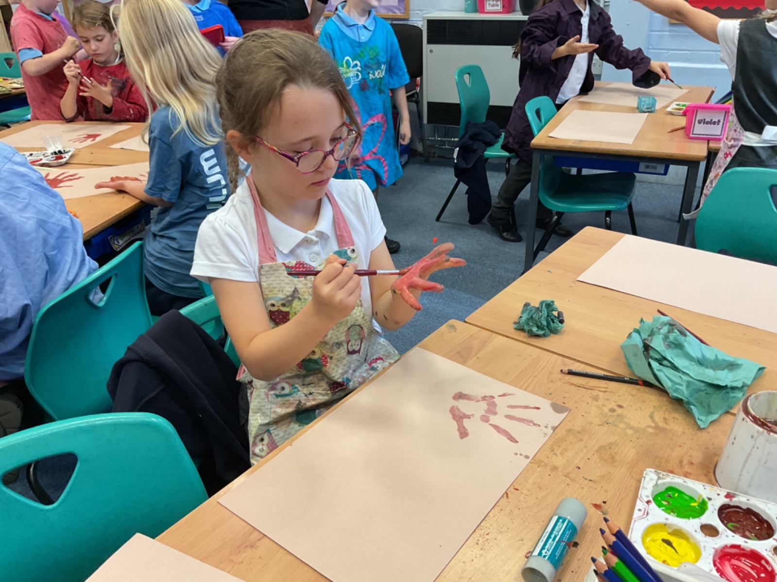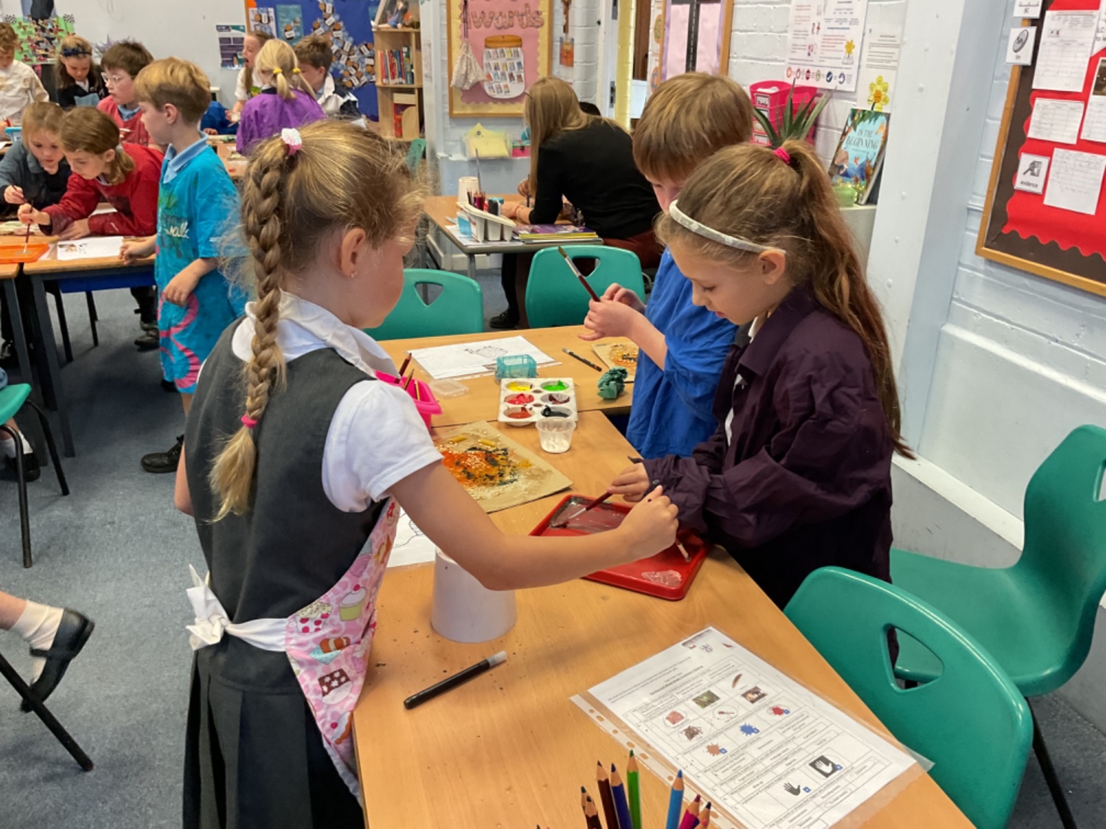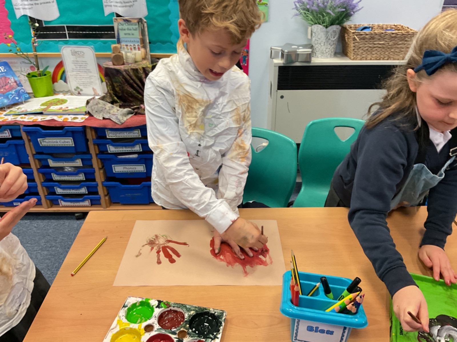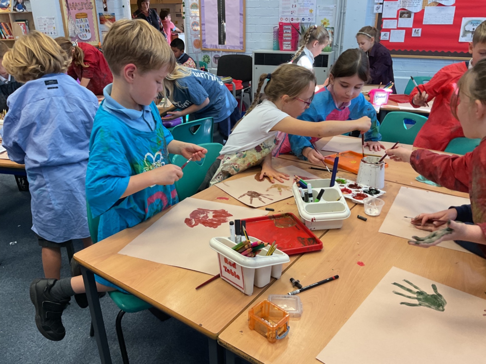 The children enjoyed taking inspiration from cave paintings in the Stone Age to create their own cave wall paintings.